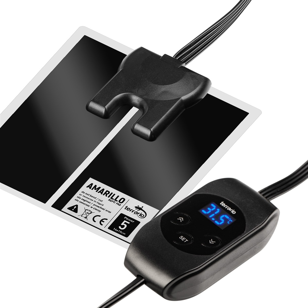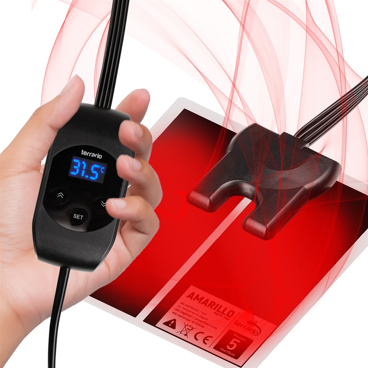 Mata Grzewcza Terrario Amarillo: Prosta, inteligentna i efektywna. Zaprogramuj żądaną temperaturę maty grzewczej i nie martw się więcej temperaturą w terrarium, nawet w przypadku braku prądu!