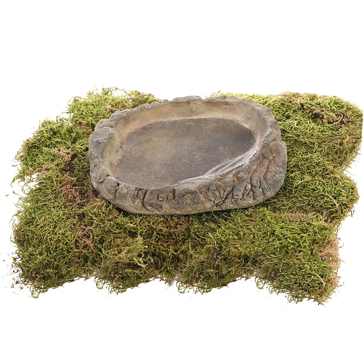 Płaska miska w skale doskonale nadaje się do podawania pokarmu roślinnego i mięsnego. Świetnie sprawdza się dla żółwi, agamy brodatej lub gekona lamparciego. Z miski możesz również stworzyć płytki basenik z wodą