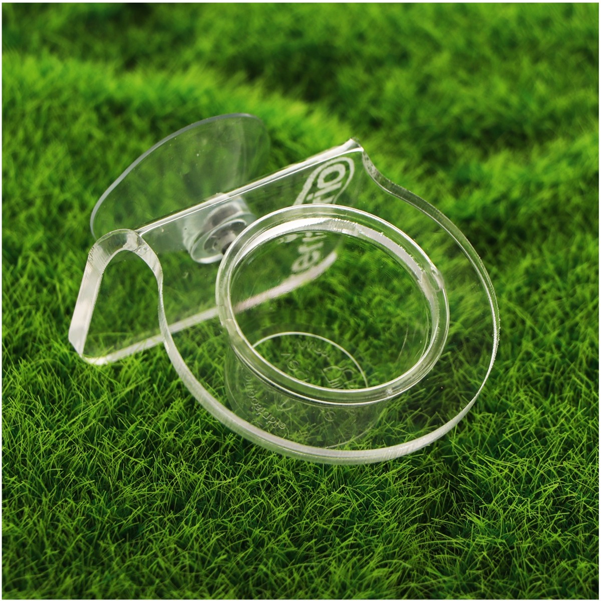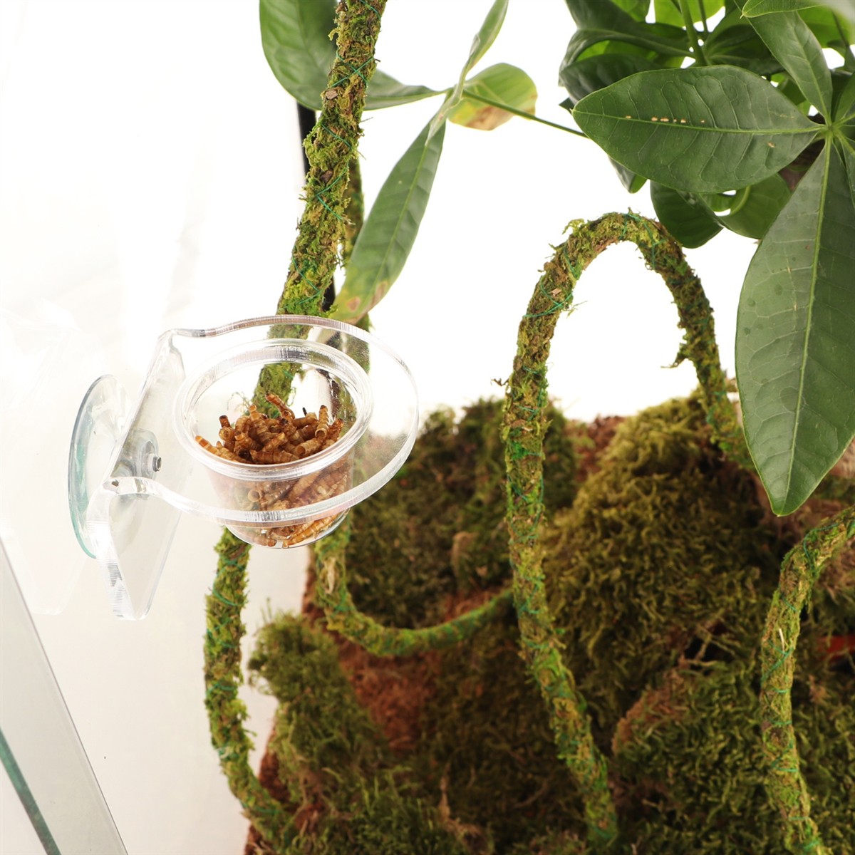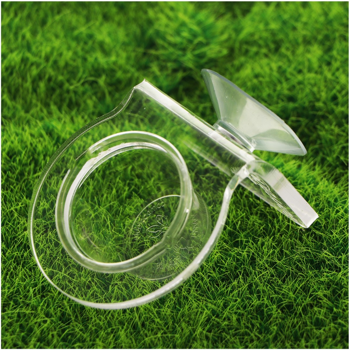 Przyssawki, akrylowy korpus i plastikowe miseczki. Wszystko jest przejrzyste bardziej niż szkło. Miska staje się niewidoczna w terrarium, aby nie zakłócać jego naturalnego wystroju.