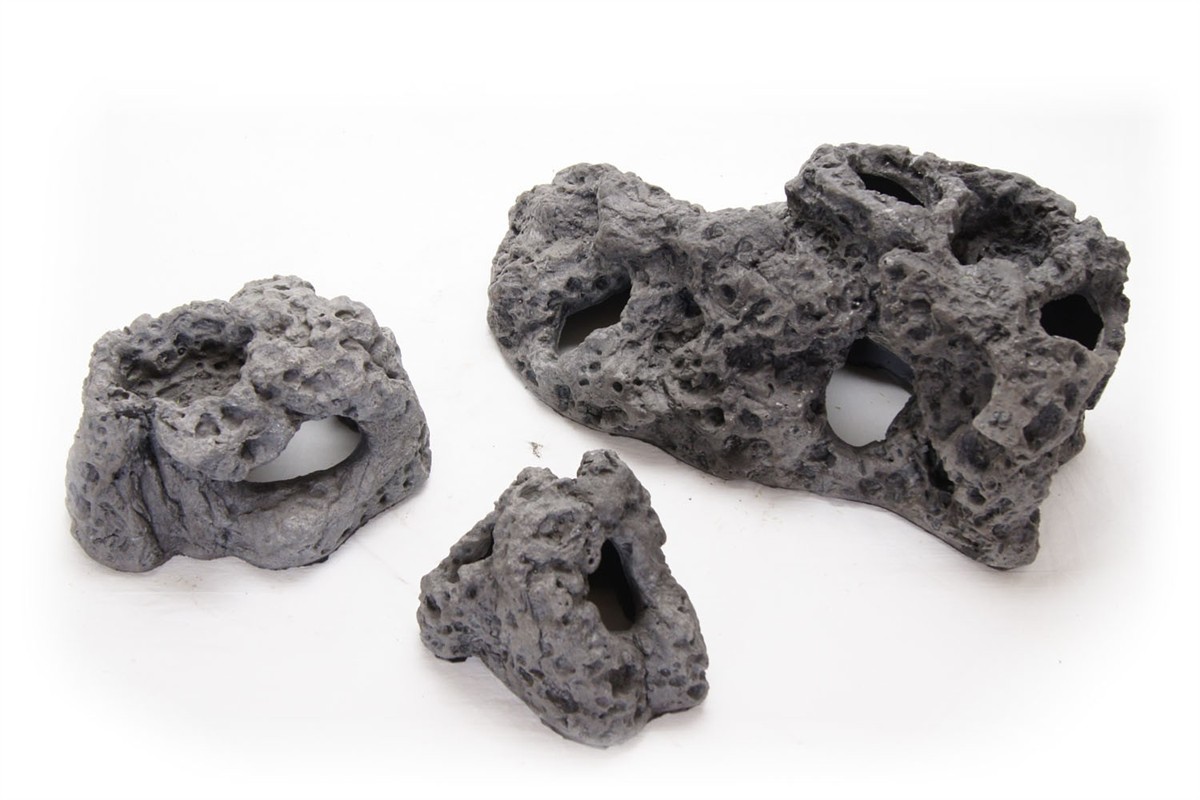 Kamień - jaskinia o unikalnym kształcie zastygłej lawy wulkanicznej, wyróżnia się nie tylko kształtem ale przede wszystkim naturalnym wyglądem, dzięki porowatej fakturze. Proces malowania dopełnia realistyczny wygląd, a akcesorium staje się ozdobą akwarium lub terrarium a nie tylko niezbędnym elementem wyposażenia.