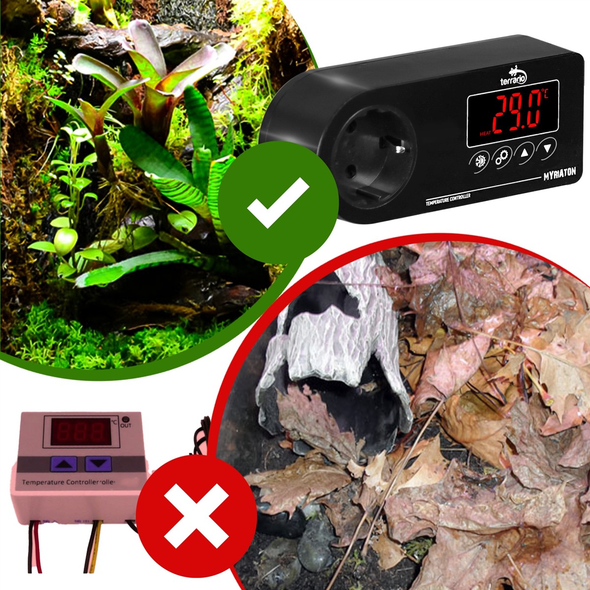 To jest cecha termostatu, którą powinieneś brać pod uwagę. Na czym polega różnica? Termostaty przemysłowe mają o wiele większy zakres pracy (np: od -40 do +110st.C) dla przemysłu taka rozbieżność jest ważna, ale do terrarium zupełnie niepotrzebna. Termostaty o tak szerokim zakresie pracy są o wiele mniej dokładne!!! Termostat Myriaton posiada zakres pracy od +16 do +40st.C. Przy tak wąskim zakresie pracy (a jednocześnie wystarczającym dla każdego gada czy płaza) termostat zachowuje mega dokładność przy każdym jednym stopniu temperatury, co jest kolosalnie ważne dla Twoich gadów czy płazów.