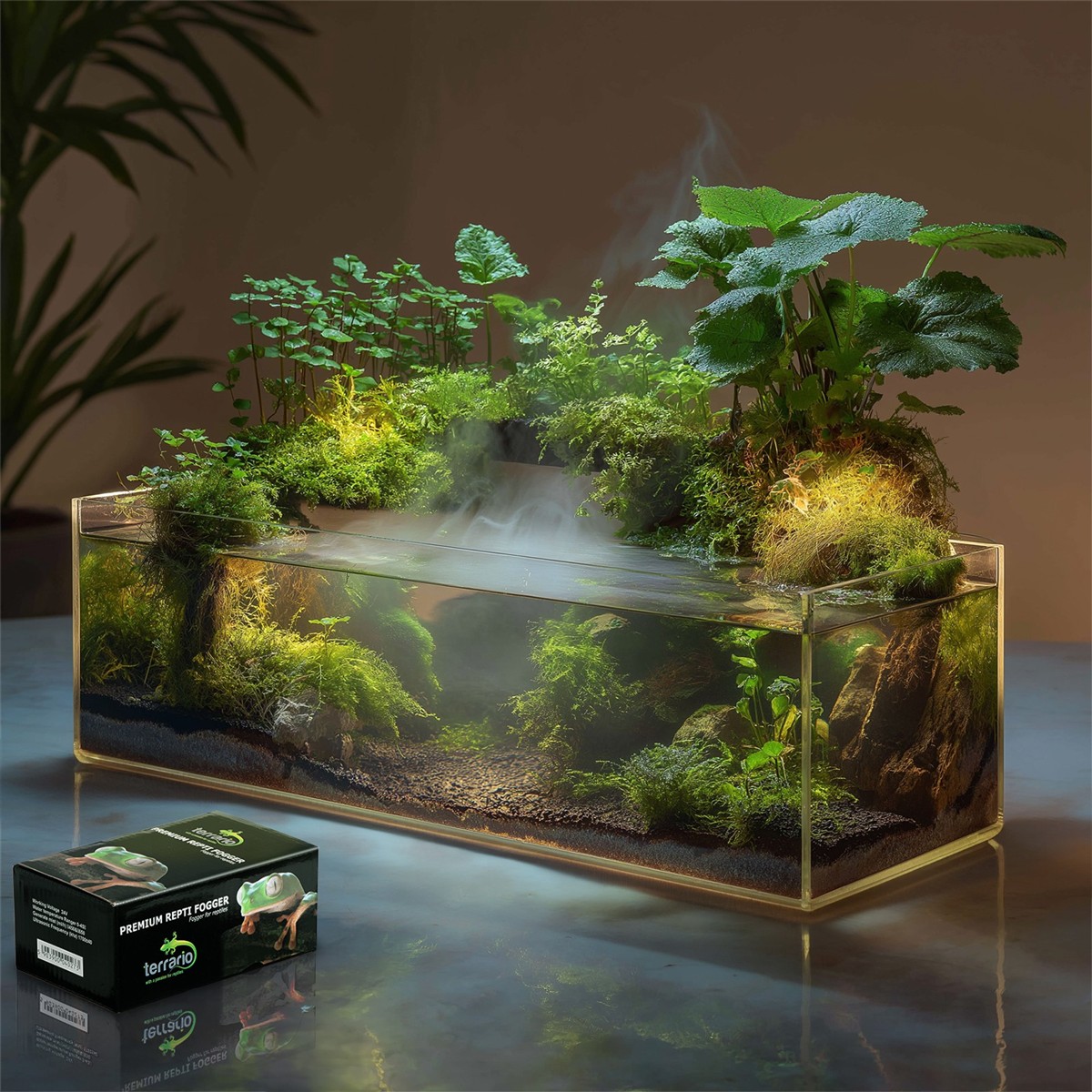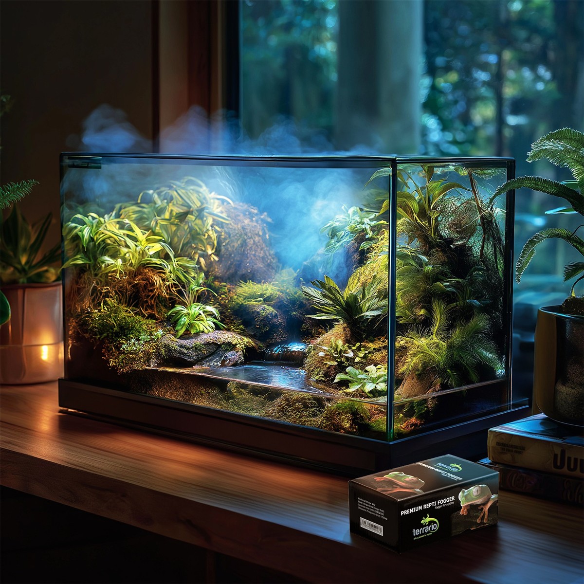 Fogger, zamgławiacz do terrarium. Zamień swoje terrarium w magiczny las tropikalny! Terrario Premium Fogger v2 to najnowszej generacji zamgławiacz, który tworzy gęstą, naturalną mgłę — piękną i funkcjonalną. Idealny dla gadów, płazów i pajęczaków, dbający o ich skórę i komfort.