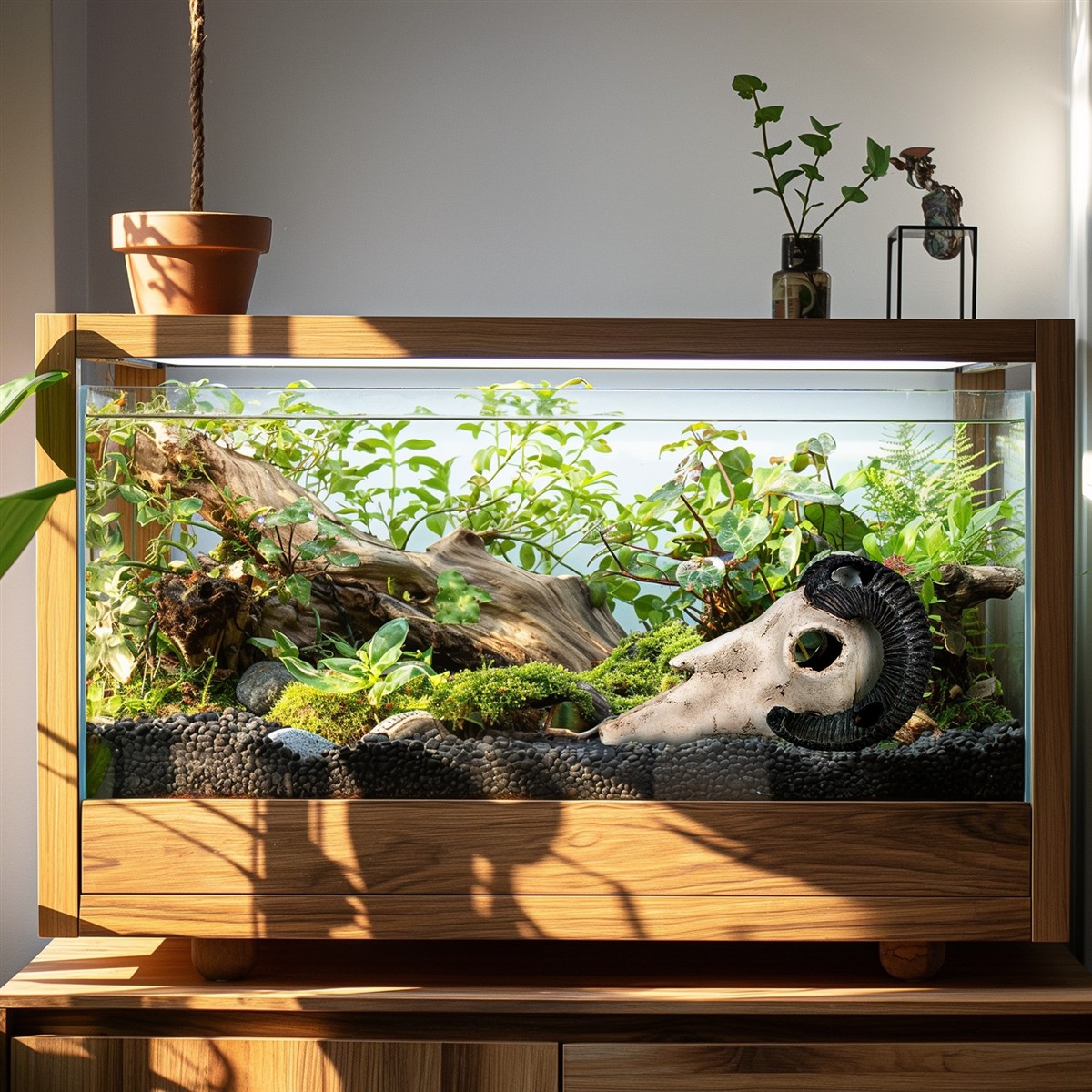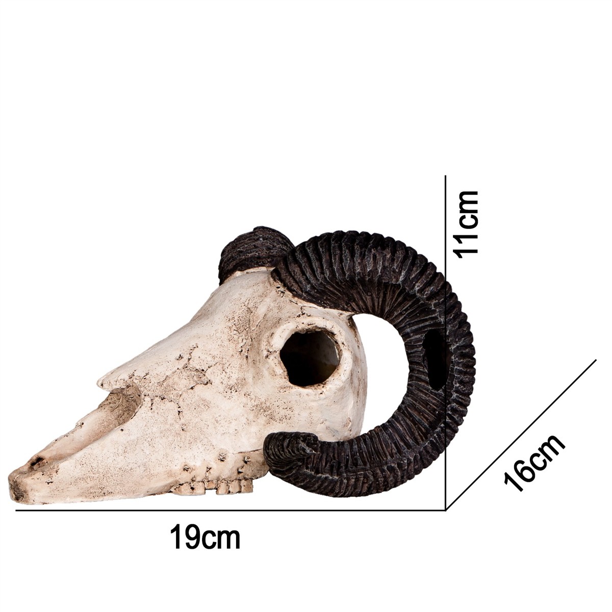 - Realistyczny wygląd: Szczegółowo odwzorowane detale czaszki i zakręconych rogów nadają terrarium niepowtarzalny styl.