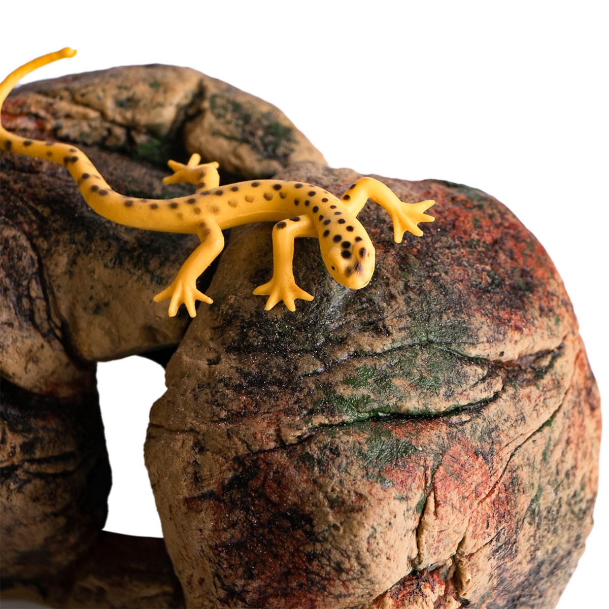 Gekon poszukuje wąskich szczelin w skałach jako naturalna kryjówka. Ta forma stworzona jest właśnie z myślą o jego potrzebach. Jaskinia jest całkowicie otwarta od spodu, aby umożliwić ułożenie np: mchu w celu przygotowania jaskini do wylinek.