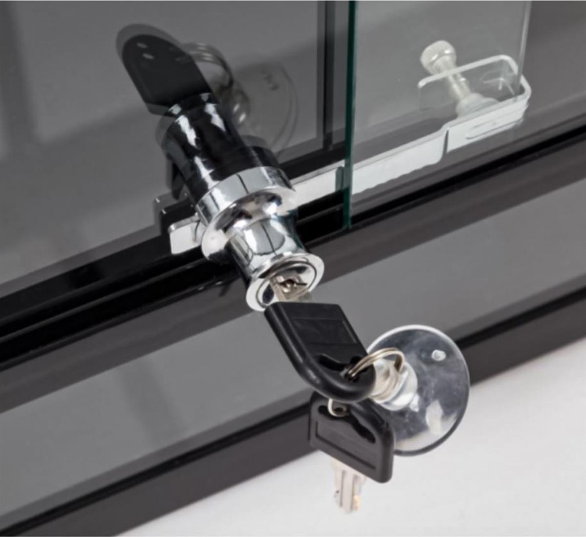 Łatwy w montażu i demontażu, nie wymaga wiercenia ani przeróbek. W komplecie znajdują się dwa klucze — główny i zapasowy. Każdy zamek Terrario posiada klucze uniwersalne — jeden klucz pasuje do wszystkich zamków tej serii.