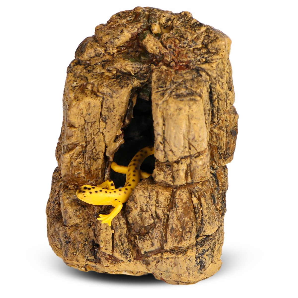 Jaskinia, kryjówka lub grota dla gadów. Specjalnie dedykowana dla gekonów lamparcich. Imitacja szczeliny w skale jest doskonałym miejscem do kryjówki i wylinki. Odporna na wodę i wysoką temperaturę. Jaskinia do terrarium.