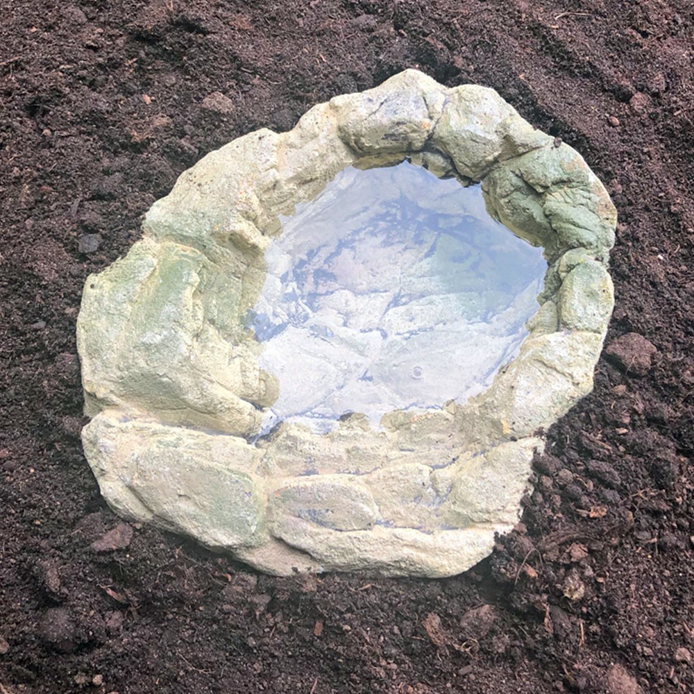 Czy coś może naturalniej wyglądać? Prawdziwe zagłębienie w ziemi to doskonały pomysł na miskę. Świetnie sprawdzi się jako basenik do kąpieli dla małych gadów i płazów. Sprawdzi się jako miska na wodę do picia oraz miseczka na pokarm.