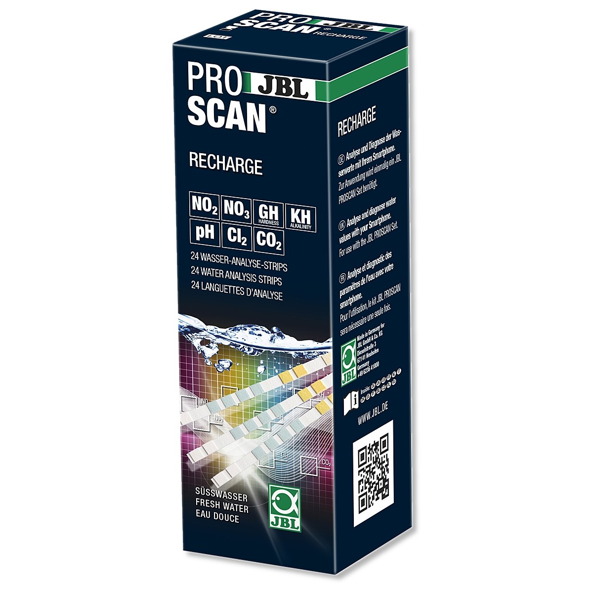 Prosta i bezpieczna analiza parametrów wody słodkiej za pomocą smartfona. ProScan umożliwia precyzyjny pomiar następujących wartości: twardość całkowitą, twardość węglanową, wartość pH, azotyny, azotany, chlor oraz zawartość dwutlenku węgla.