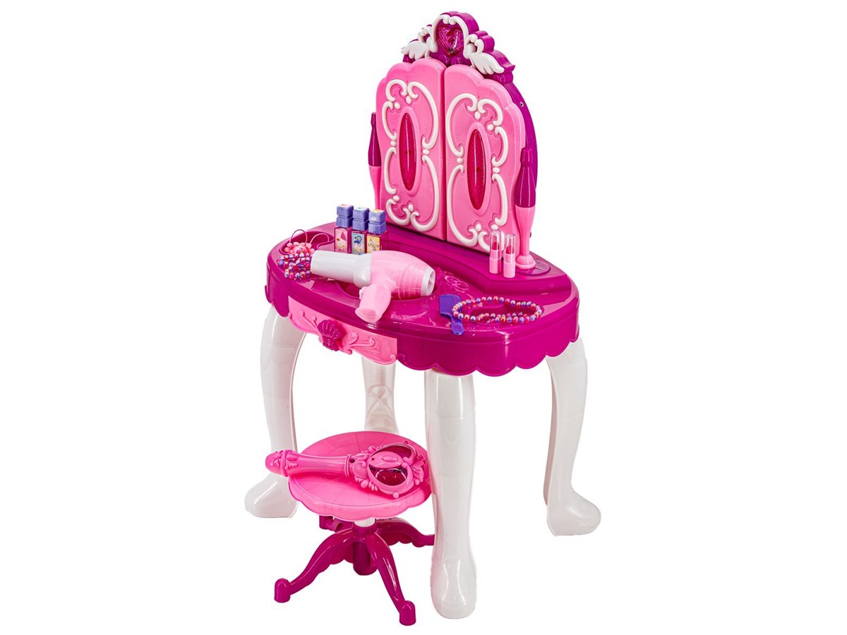 Toaletka dla Małej Księżniczki z lustrem i akcesoriami to marzenie każdej dziewczynki. Nic tak nie zadowoli dorastającej córki, jak własne miejsce, w którym – tak jak mama – może codziennie dbać o urodę i piękny wygląd.