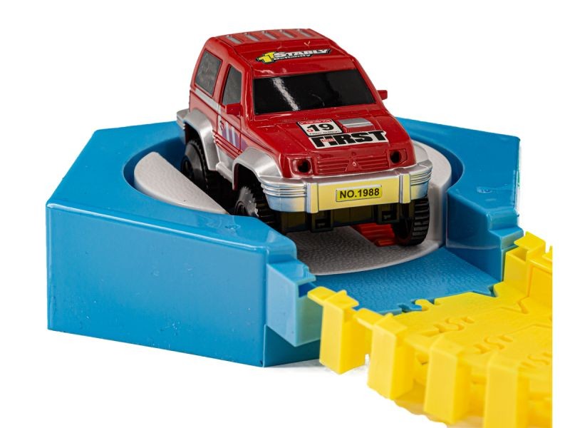 Ten super zjazd posiada mnóstwo przeszkód, przez co jazda po nim tym wyścigowym świecącym autkiem jest absolutnie odjazdowa! To prawie jak off-road, pełen ekstremalnych zakrętów, podjazdów, pętli i zjazdów.