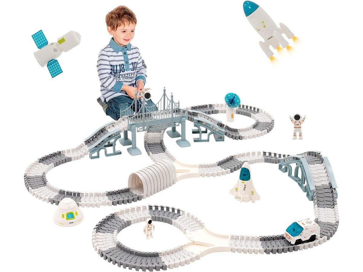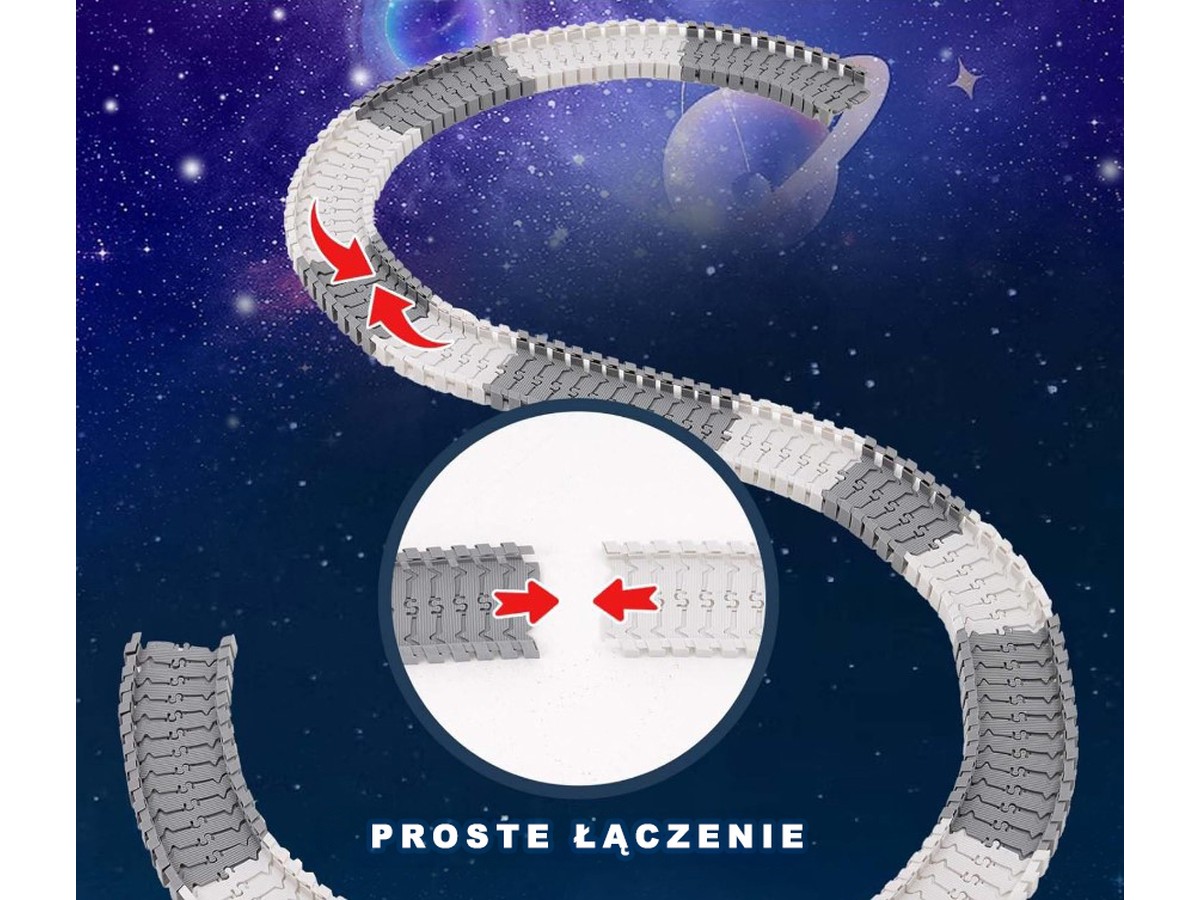 Ten zestaw to nie byle jaki zabawkowy tor wyścigowy - może sprawić, że pokój Twojego dziecka zamieni się w prawdziwie kosmiczny plac.