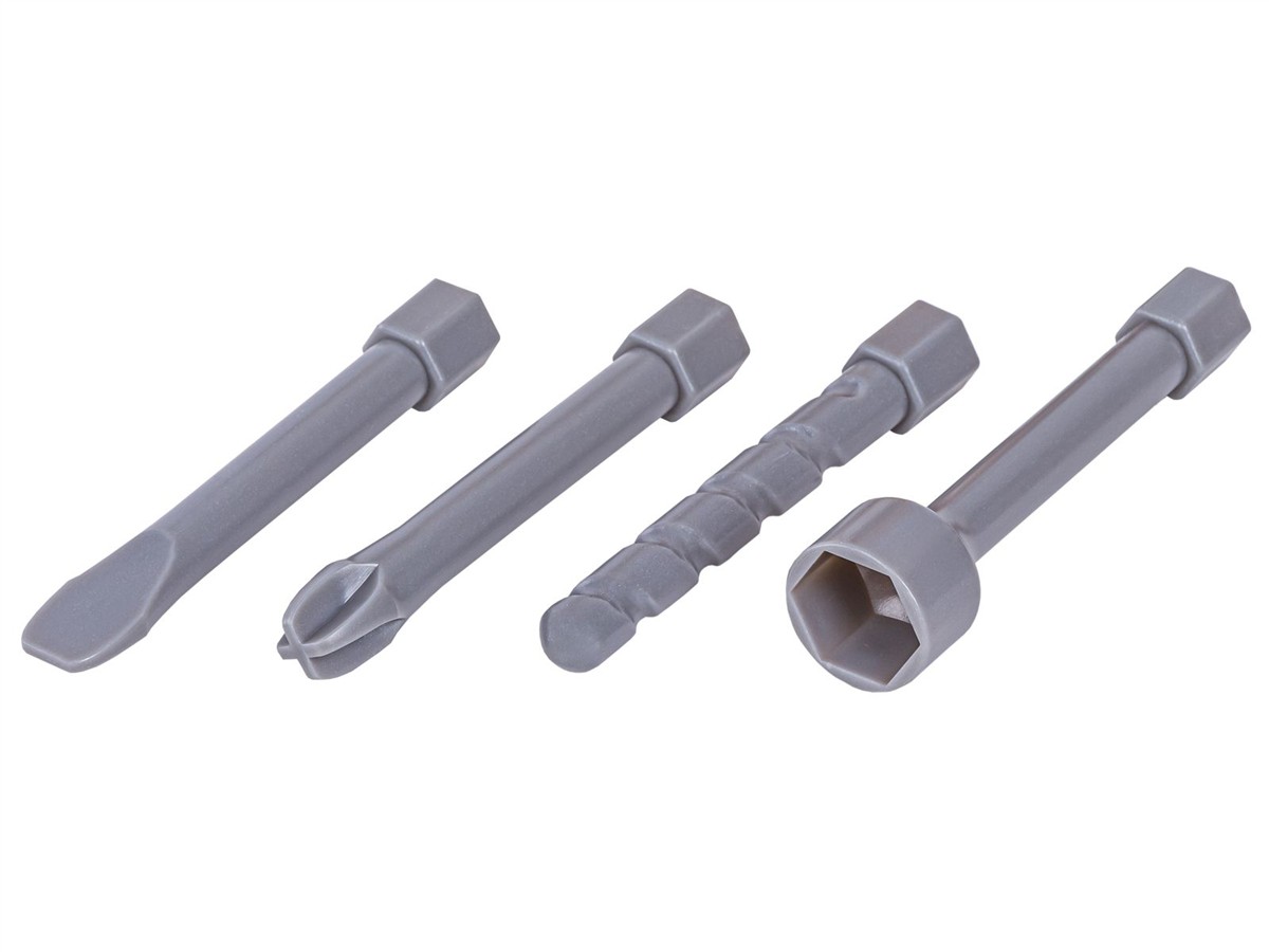 Narzędzia jak prawdziweNarzędzia wzbogacone zostały o dodatkowe efekty. Wkrętarka - posiada lewe i prawe obroty oraz wysuwany dolny akumulator - jak w prawdziwym sprzęcie dla dorosłych. | ![]() |