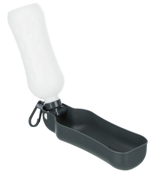 W czasie podróży również należy zapewnić psu dostęp do świeżej wody. Bidon z miską idealnie się do tego celu nadaje, gdyż pozwala na wygodny transport i podawanie wody. Doskonały na spacery i dłuższe podróże - może być transportowany na dwa sposoby: haczyk i odpinany pasek na ramię.