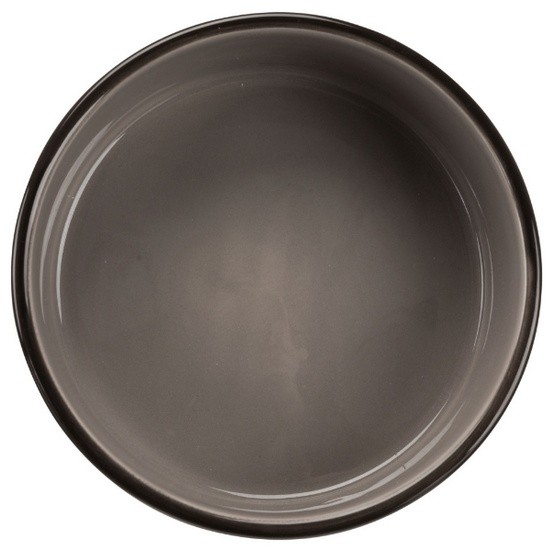 Ekskluzywnie wyglądająca ceramiczna miska w kolorze czarnym, zdobiona szarym motywem łapek na obwodzie, wewnątrz szara emalia.