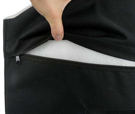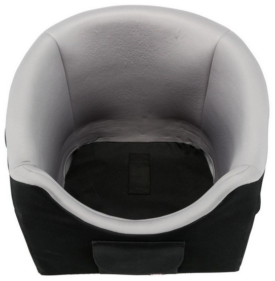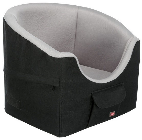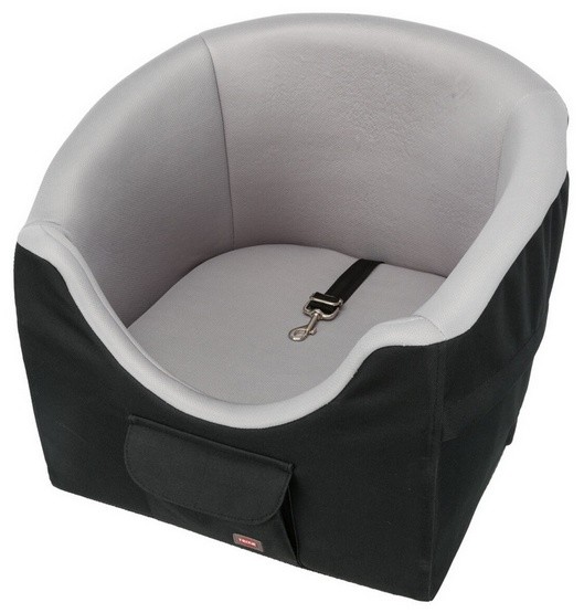 Uwaga: Siedzisko i zintegrowana krótka smycz są przymocowane do siedzenia za pomocą pasa samochodowego. Nie zapewnia to bezpieczeństwa ani zwierzęciu, ani pasażerom, ale zapobiega przewróceniu się lub ześlizgnięciu z fotela samochodowego. Pies podczas jazdy zawsze powinien być przypięty za pomocą specjalnej uprzęży bezpieczeństwa, która będzie przymocowana do zintegrowanej krótkiej smyczy.