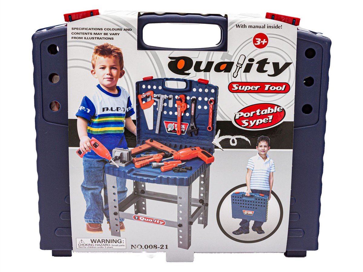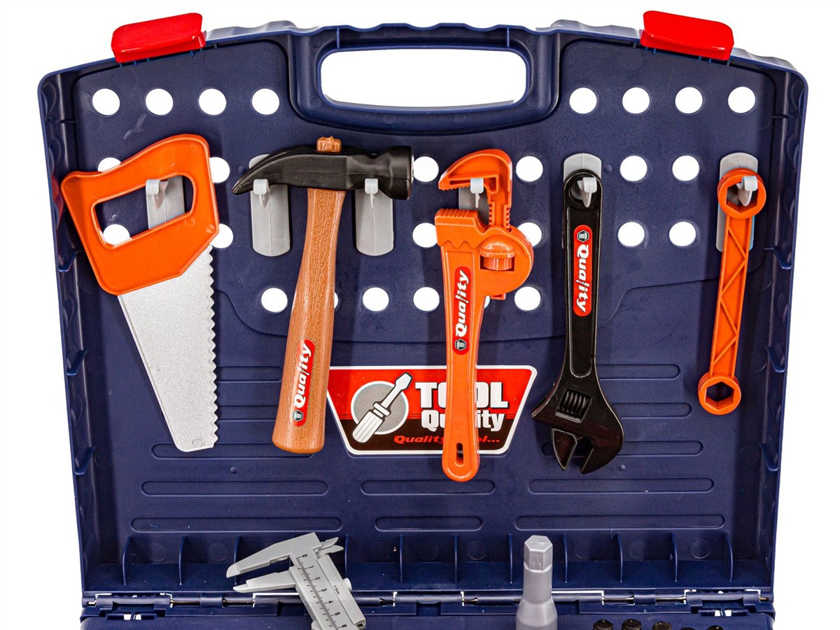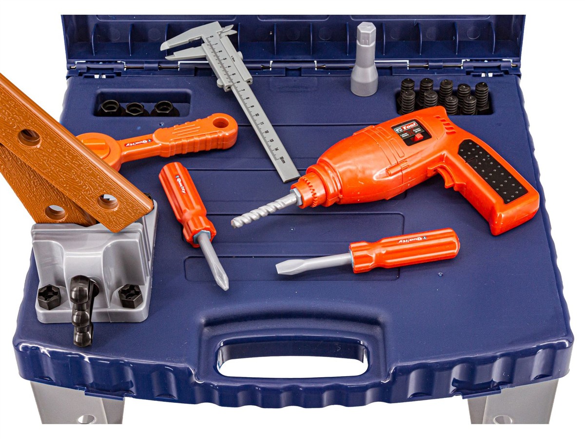 Warsztat stolarski w walizce to doskonała zabawka edukacyjna dla chłopców. Zestaw ten rozwija kreatywność, logiczne myślenie i zdolności manualne, a przy tym dostarcza mnóstwo frajdy.