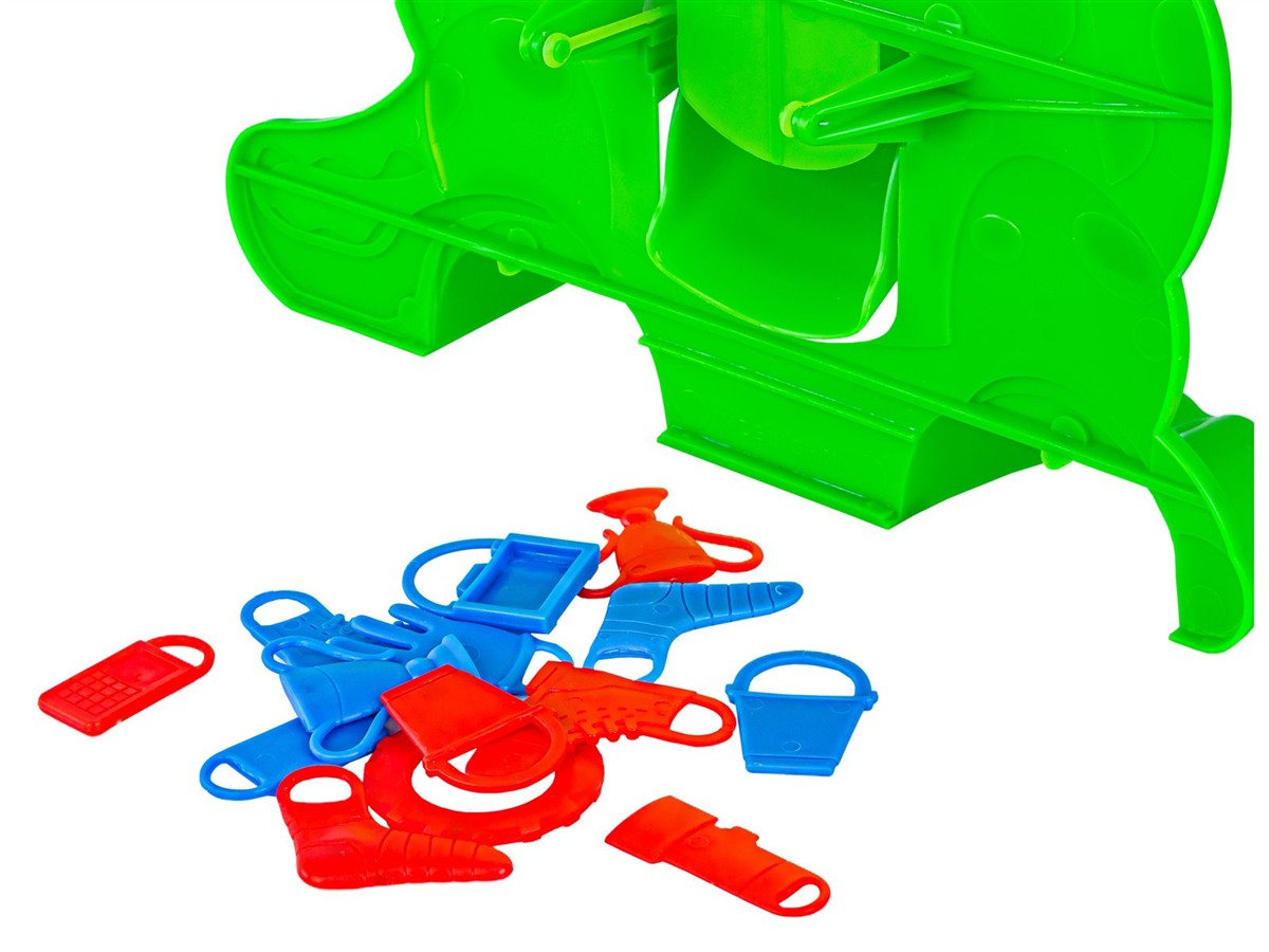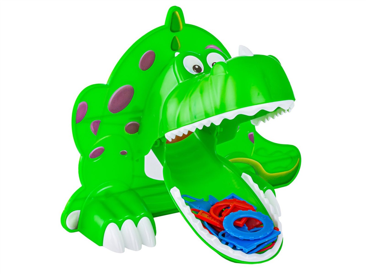 Zasady gry:Gra przewidziana jest dla 2-4 osób. Do otwartej paszczy dinozaura wsypujemy wszystkie elementy do zebrania. Gracze kolejno, naprzemiennie za pomocą chwytaka starają się wyciągnąć jakikolwiek przedmiot. | ![]() |