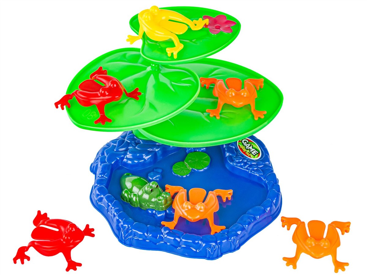 Zasady gry:Zadaniem każdego gracza jest umieszczenie wszystkich swoich żabek w bezpiecznym miejscu na listkach. Zwycięża osoba, która dokona tego jako pierwsza. Gracze musza jednak pamiętać o krokodylu, który ciągle czeka na spadające żaby. | ![]() |