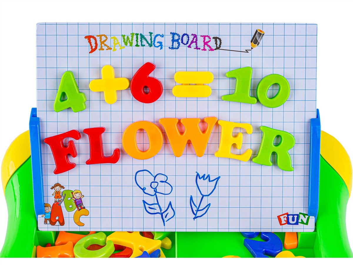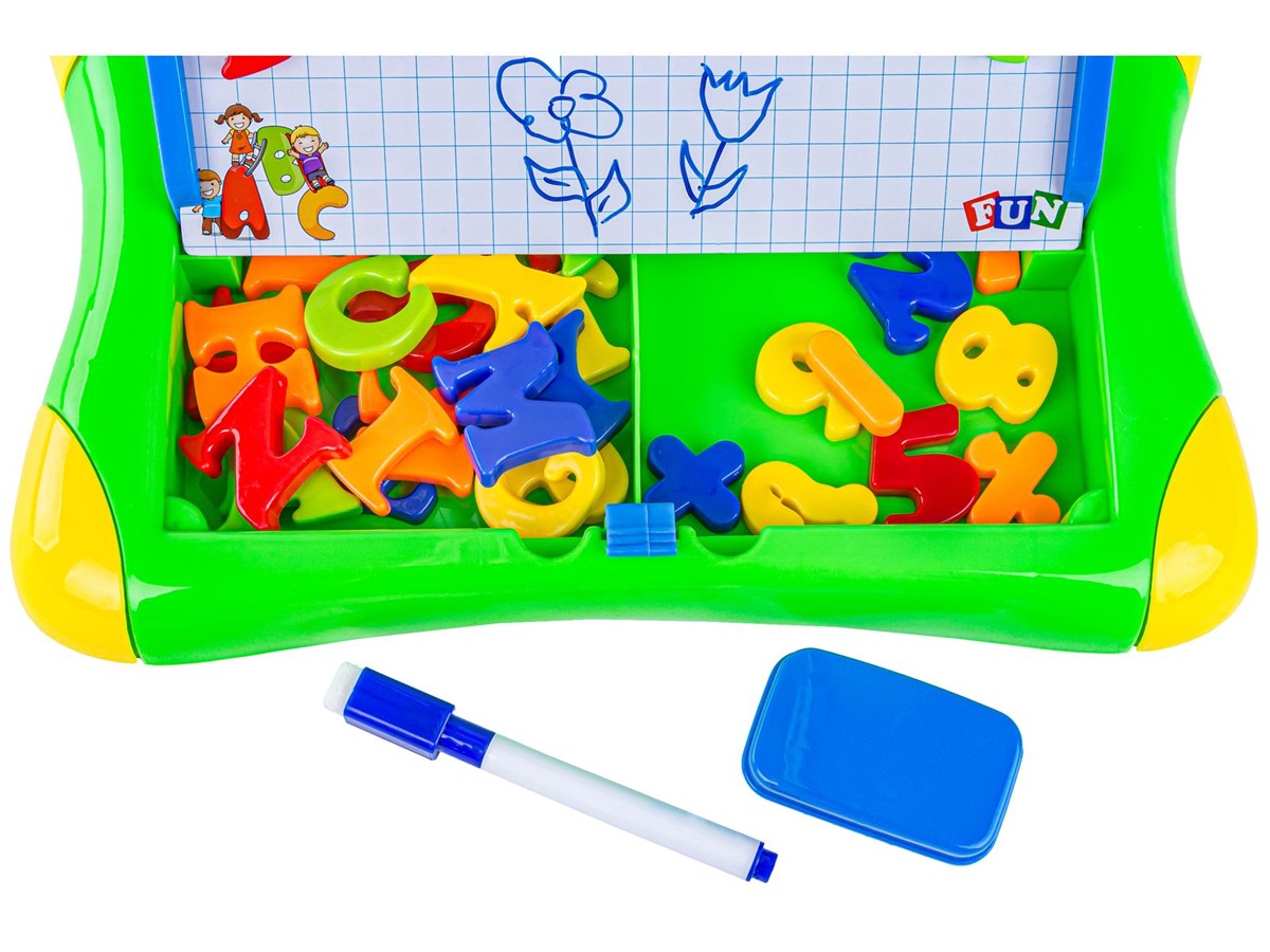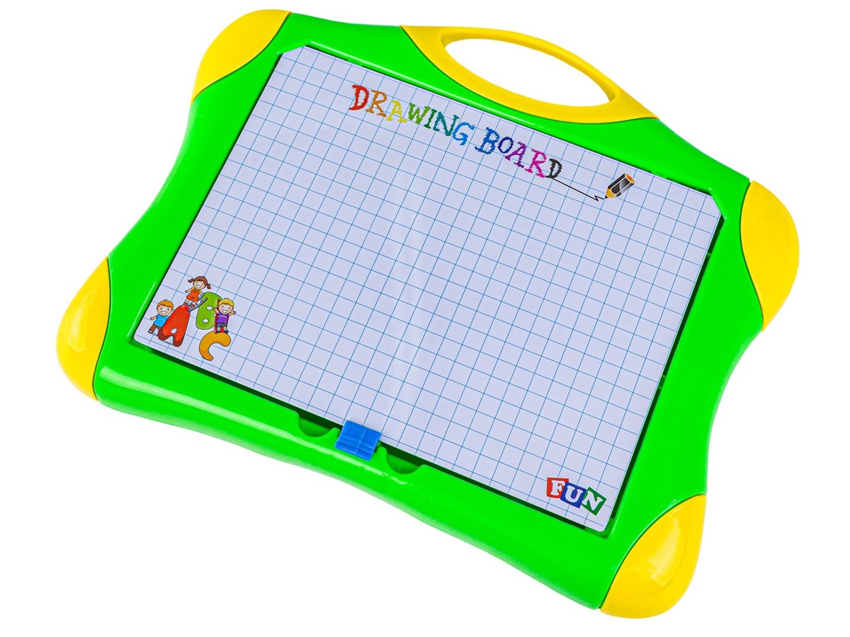 Jedna tablica a tyle radości z zabawy. Na tablicy można zarówno rysować zmazywalnym pisakiem jak i układać np. równania czy wyrazy z literek na magnes. Dziecko nie potrzebuje ani kartek ani ołówka ani gumki do mazania :) Dzięki naszemu zestawowi można tworzyć coraz to nowe obrazki a w razie potrzeby wszystko zmazać dołączoną do zestawu gąbeczką.