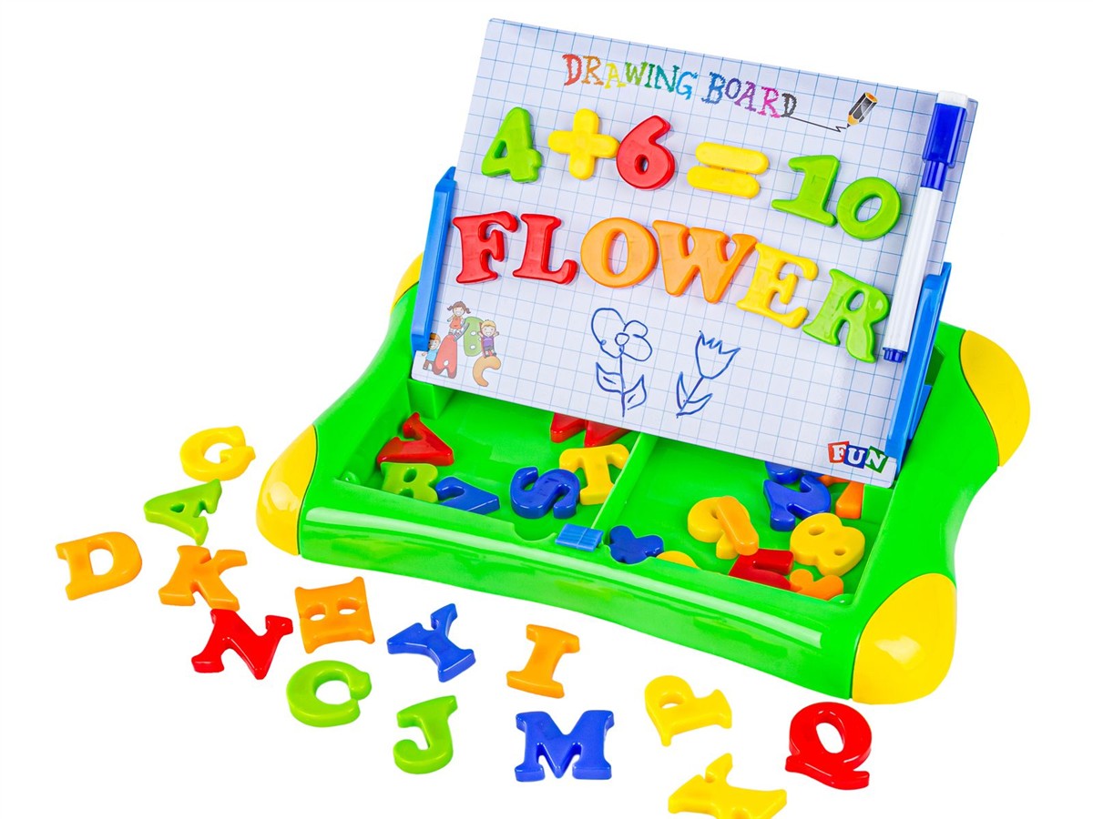Tablica magnetyczna to wymarzony prezent dla ciekawego świata i lubiącego twórcze zabawy dziecka, rozwijający: