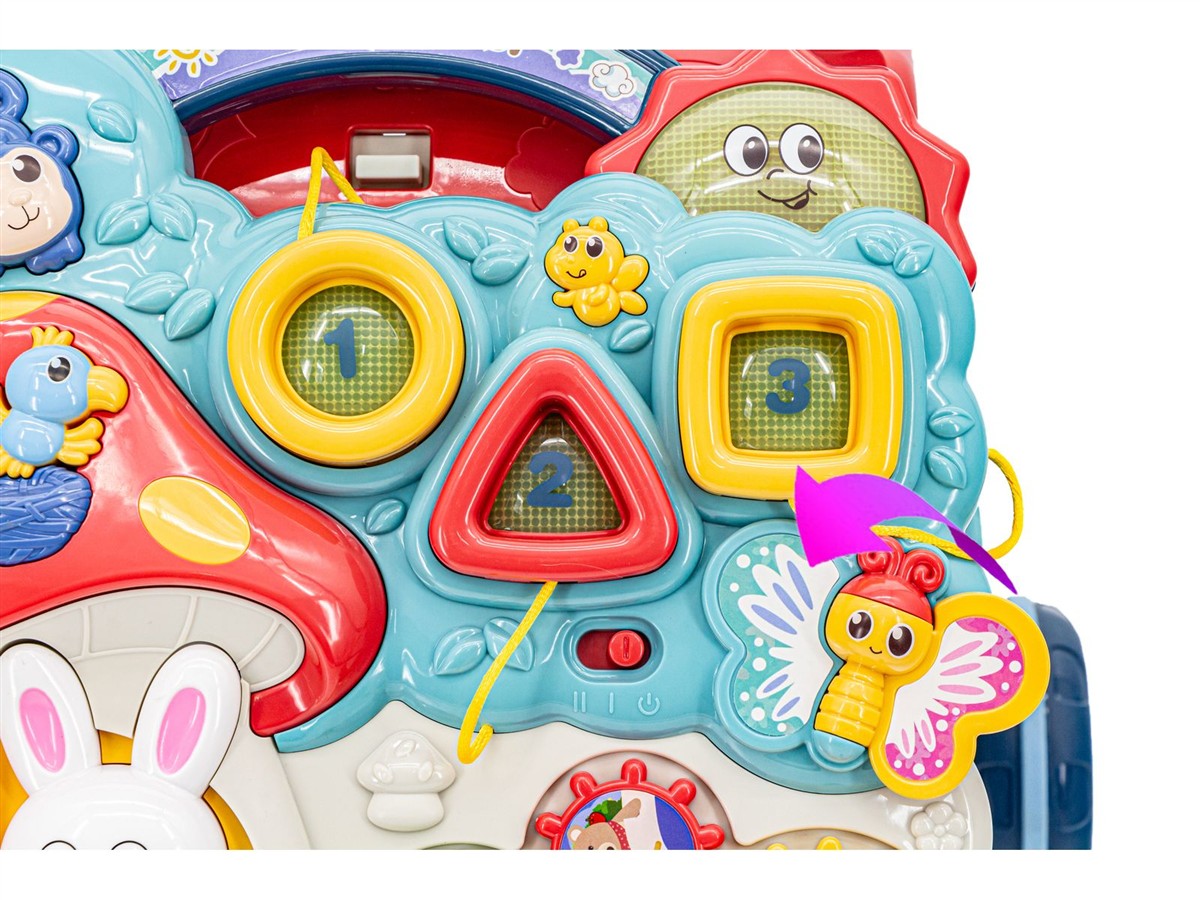 Nic tak nie uraduje dziecka, jak zabawka z niespodziankami, które można samodzielnie odkrywać. A ten pchacz posiada ich naprawdę wiele!