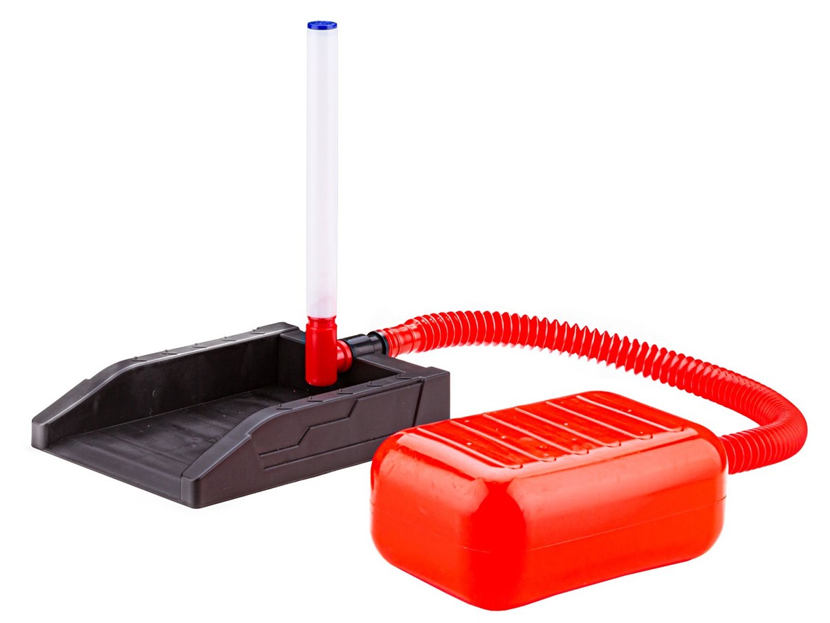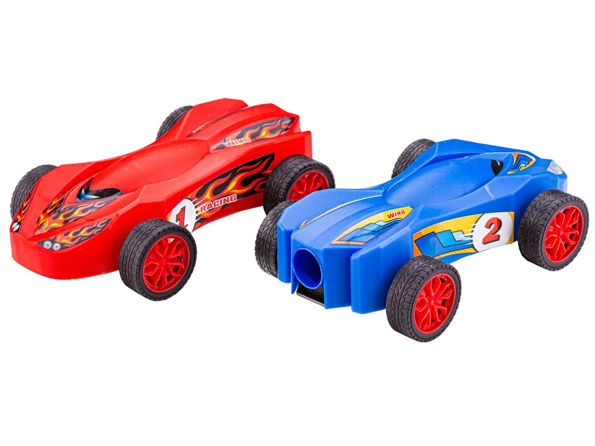 Składamy wyrzutnię łącząc podstawę oraz pompkę. W zależności od tego czy chcemy bawić się wyścigówkami czy rakietami nakładamy na koniec wyrzutni odpowiednią końcówkę. Następnie na zakończeniu umieszczamy zabawkę. Energicznie naduszamy nogą na pompkę. Naduszenie powoduje wzrost ciśnienia wewnątrz rurki. Powietrze znajduje ujście na końcu rurki - wyrzucając naszą rakietę wysoko w powietrze lub auto daleko przed siebie. Im mocniej naciśniemy pompkę - tym dalej mknie nasz pojazd lub leci rakieta. To super zabawa.
