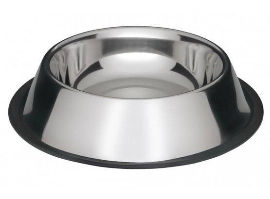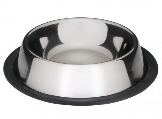 Barry King Miska metalowa na gumie Miska przeznaczona na karmę lub wodę.Łatwo ją utrzymać w czystości.Guma przy podstawie zapobiega przesuwaniu miski. Pojemność: 0,7 LŚrednica podstawy: 23,5 cmWysokość: 5 cm