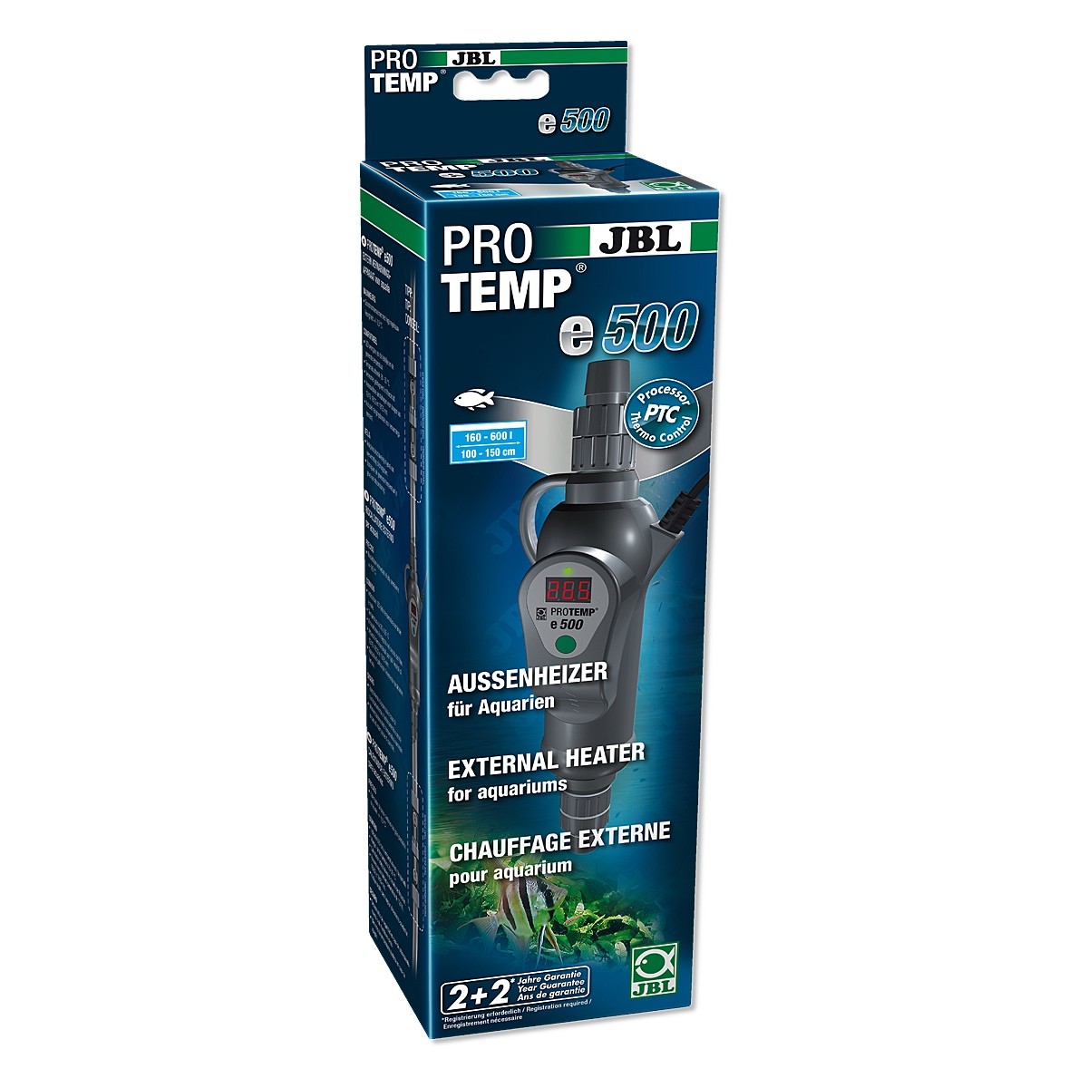 Grzałka zewnętrzna do akwariów słodkowodnych i morskich 160 do 600L. Posiada wbudowany wyświetlacz LED, wskazujący aktualną oraz zadaną temperaturę.