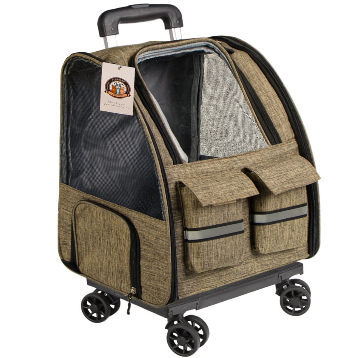 Transporter na kółkach - plecak dla kota lub psa. Idealny do podróży małych i dużych oraz do wizyty u weterynarza. Duża sztywność w połączeniu z bardzo odpornym materiałem i pancernymi zamkami sprawią, że Twój kot czy pies nie będzie w stanie zniszczyć tego transportera i będzie mógł się cieszyć podróżami bez końca. Otwierana przednia klapka "okienko", otwierane boki w całości lub tylko w części, kieszonki, dodatkowe wentylacje to tylko niektóre udogodnienia.