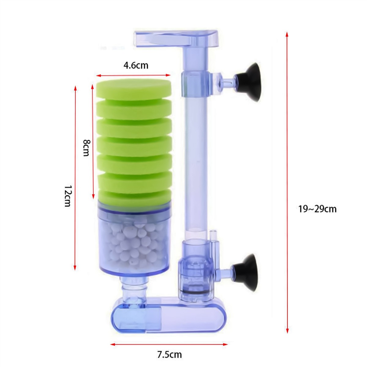 Filtr z gąbką do filtracji biologicznej do zastosowania w akwarium, krewetkarium, nano-zbiornikach. Dzięki biodegradowalnej gąbce filtracyjnej jest bezpieczny dla środowiska. Posiada ceramiczne media filtracyjne. Podłączając filtr do napowietrzacza, można zapewnić prawidłowy obieg i filtrację wody w akwarium.
