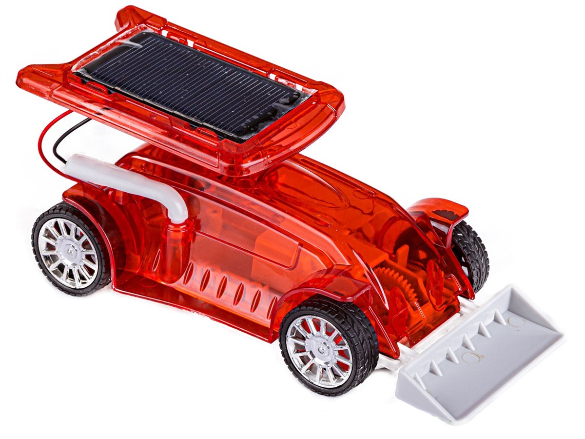 Naładowany panel solarny napędza silniczek i wprawia zabawkę w ruch.