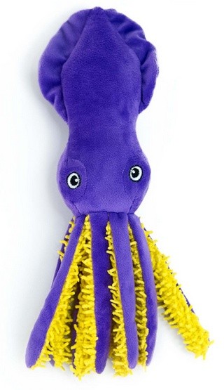 Calma to fioletowa kałamarnica, której żółte macki wydają szeleszczące dźwięki i mają różne faktury – to prawdziwa sensoryczna przygoda dla Twojego psa! Każda macka to nowe wyzwanie dla zębów i pyska. Zabawka sprawdzi…