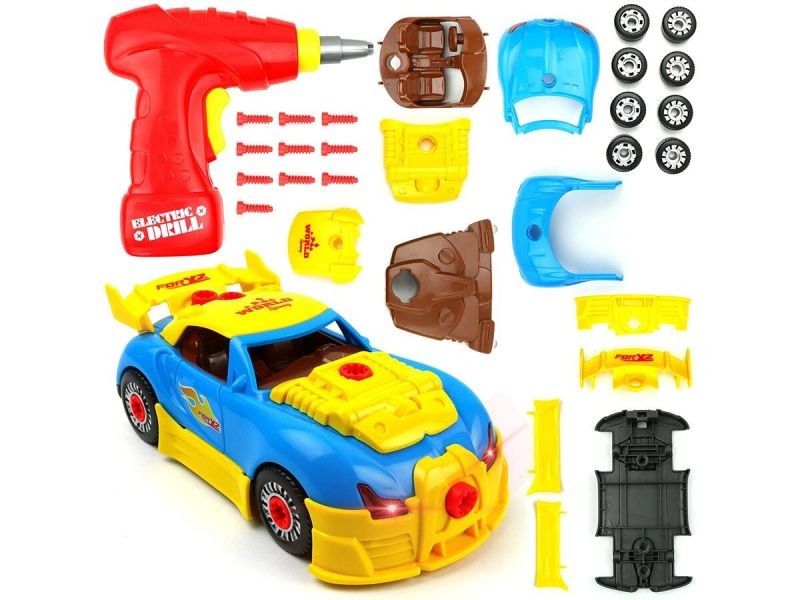 Rozkręcane auto to idealna zabawka dla małych majsterkowiczów. Zestaw ten rozwija kreatywność, logiczne myślenie i zdolności manualne. W skład zestawu wchodzi mnóstwo części, m.in. koła, zderzaki, spojlery, śruby.