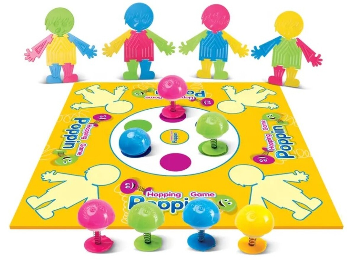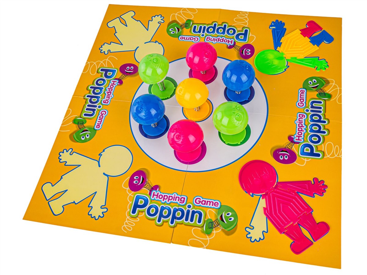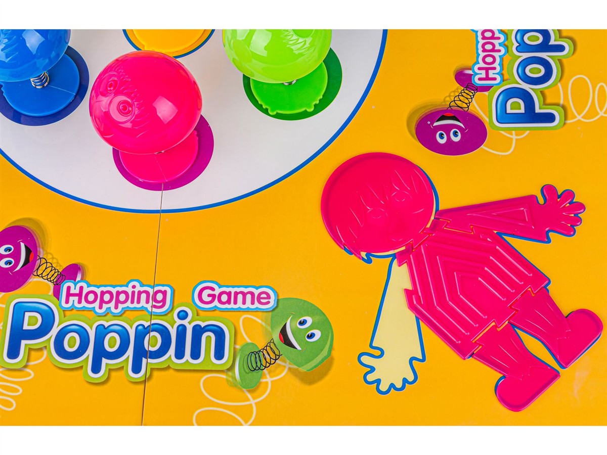 Najpierw dzielimy pomiędzy graczy kolorowe elementy do złożenia: głowę, brzuszek, rączki oraz nóżki. Każdy z graczy powinien w swojej puli mieć elementy we wszystkich dostępnych kolorach. Następnie na planszy układamy przyssawki. 6 przyssawek należy przydusić aby spód zabawki przyssał się do planszy. Od teraz rozpoczynamy grę. Przyssawki posiadają bowiem sprężynki, które po chwili wystrzelą cały element w górę. Zadaniem graczy jest złapanie wystrzelonej przyssawki. Gracz, który złapie wystrzelony pionek może w tym samym kolorze ułożyć część swojego ludzika. Następnie przyssawkę umocowujemy ponownie na planszy i czekamy na kolejne wystrzały :) Wygrywa osoba, która jako pierwsza ułoży kompletną postać Poppin.