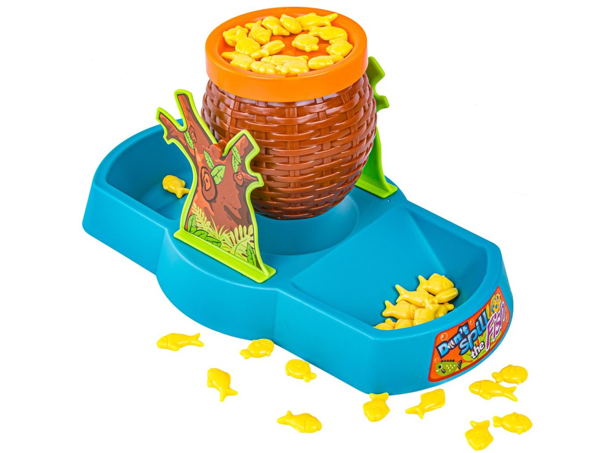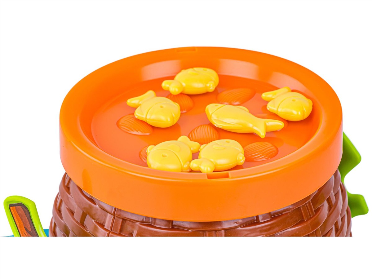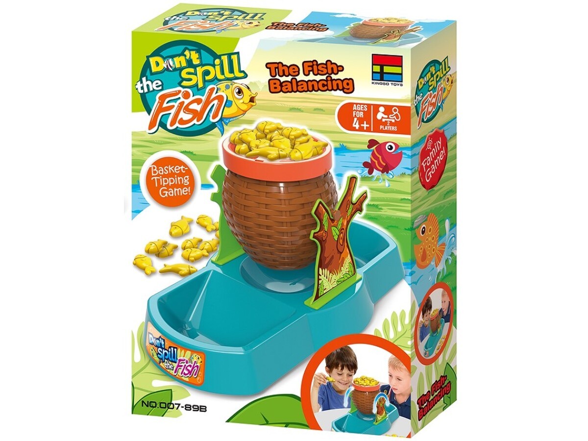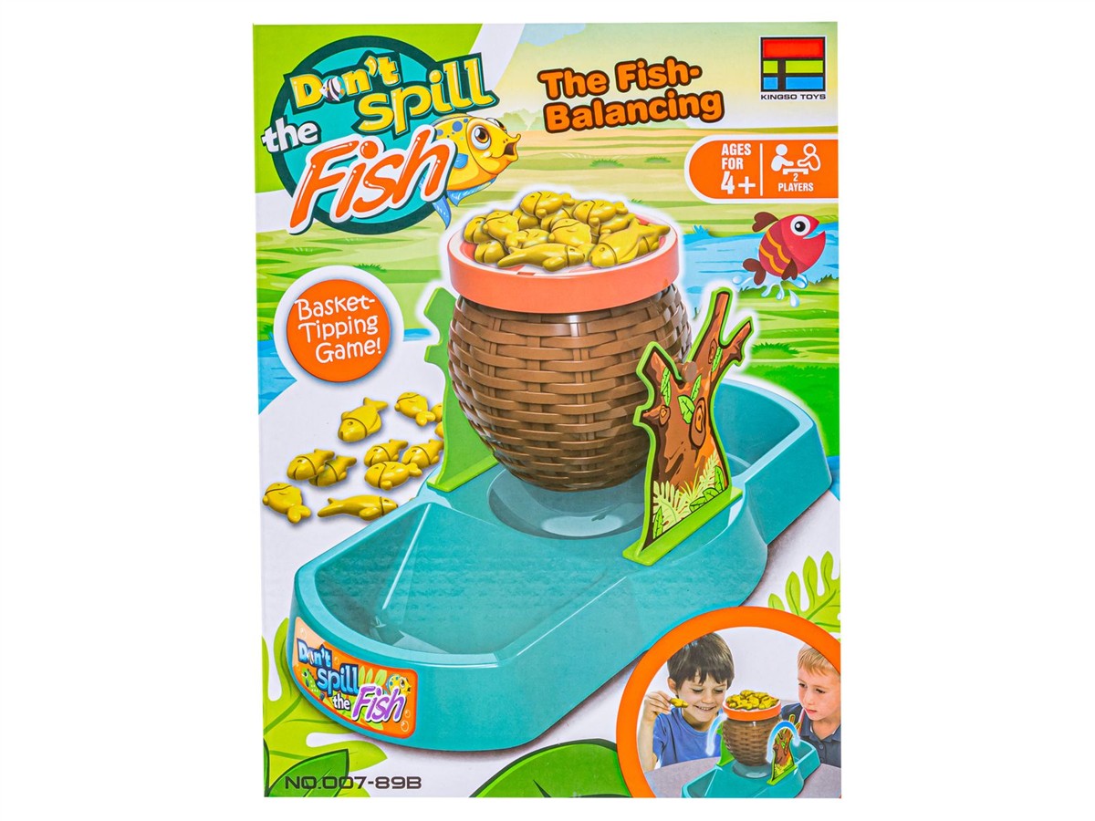Zasady gry:Zasady gry są bardzo proste. Najpierw składamy naszą planszę do zabawy oraz dzielimy po równo rybki pomiędzy graczy. Możemy już przystąpić do zabawy. Gracze po kolei układają na koszyku po jednej rybce. Nie jest to takie proste, ponieważ im więcej rybek dokładamy tym koszyk jest bardziej niestabilny. Przegrywa osoba, która przewróci koszyk i wysypie rybki do rzeki. | ![]() |