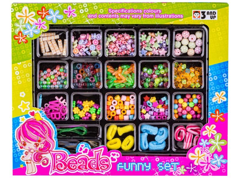 Jest to zabawka do samodzielnego zaprojektowania i zbudowania. Zestaw składa się z wielu kolorowych, plastikowych koralików i pozwala na dowolne budowanie wszystkiego co wymyśli dziecko - bransoletek, naszyjników, zawieszek, ozdób do włosów itp. Zabawka, która przemieni dziecko w małego architekta, pobudzi wyobraźnię i pomoże rozwinąć zdolności manualne. Super zestaw zapewni każdemu dziecku mnóstwo wesołej zabawy.
