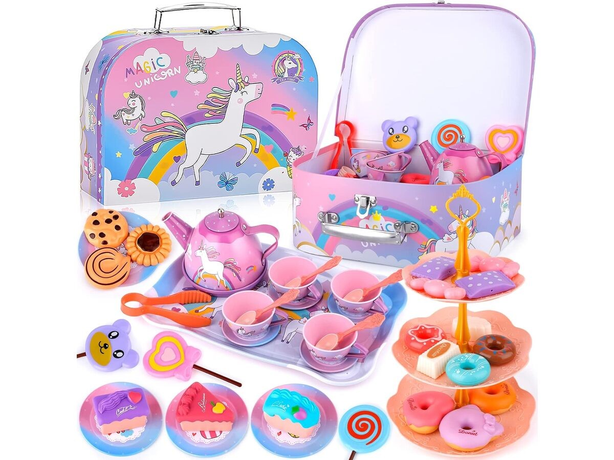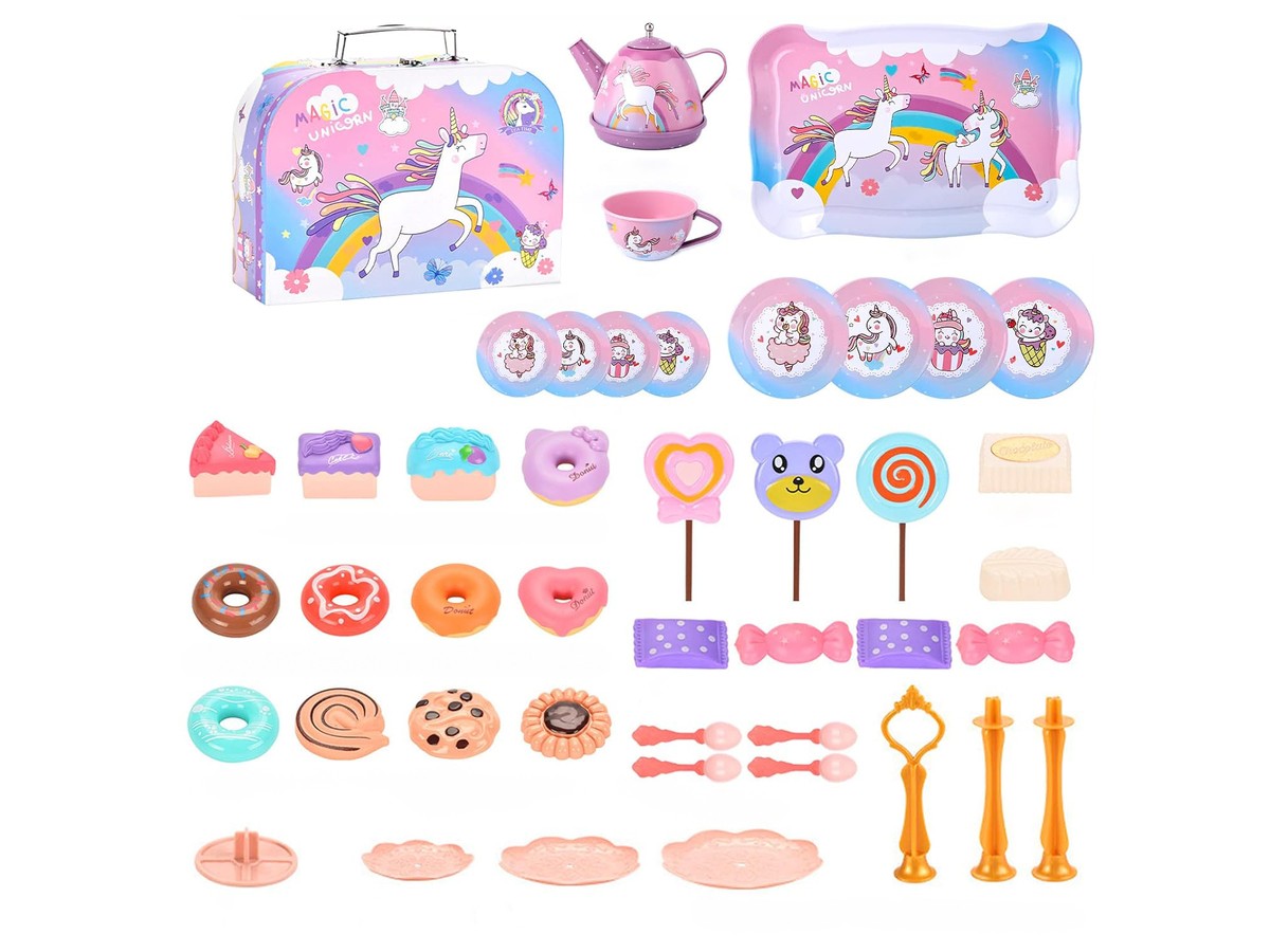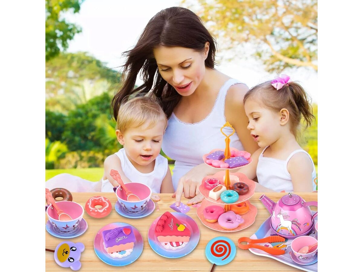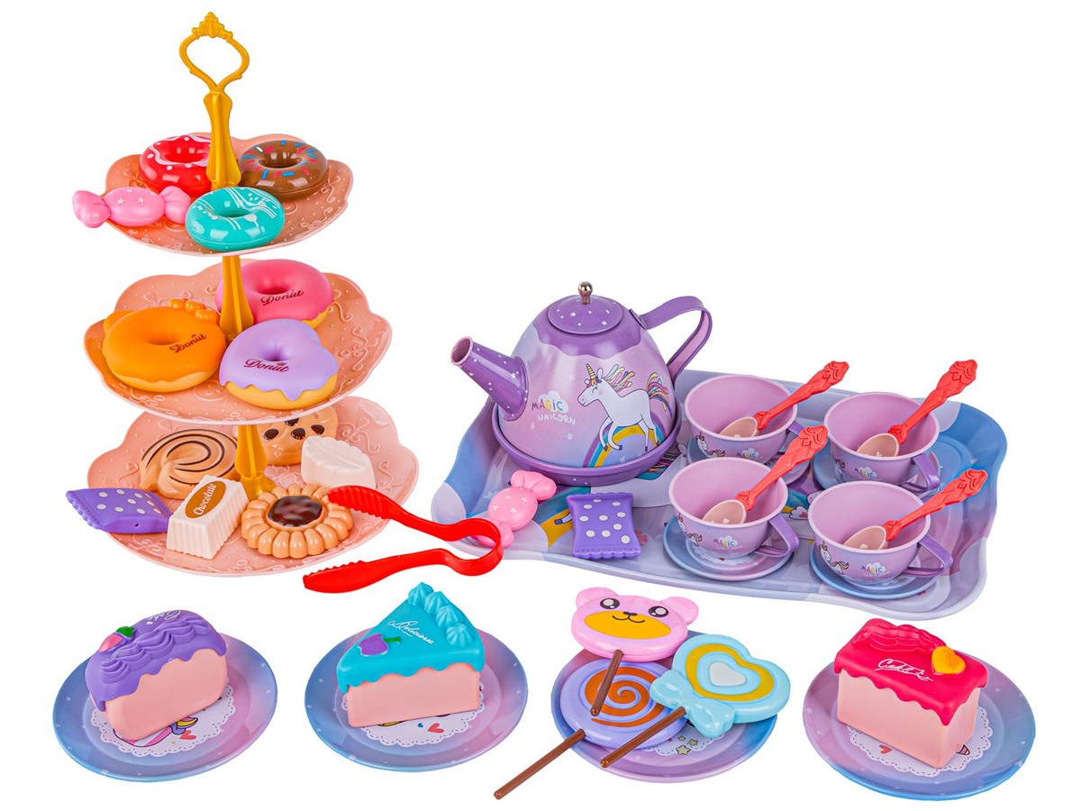 Tacka, filiżanki, talerzyki oraz czajniczek są metalowe, dzięki czemu są o wiele trwalsze od plastiku i na pewno długo posłużą.