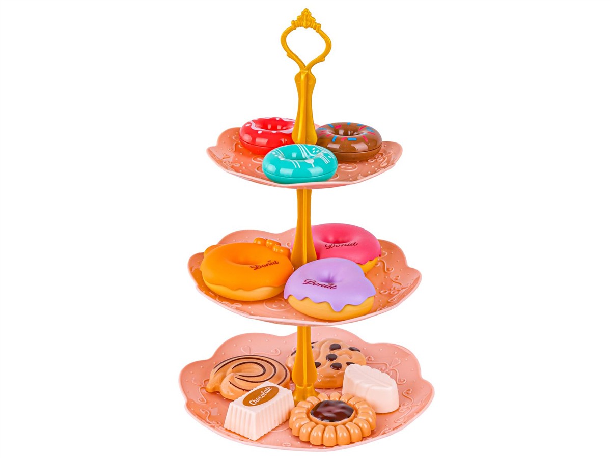 Do dyspozycji mamy całą gamę produktów: czajnik, filiżanki, tackę, kawałki ciasta, pączki i inne słodycze, paterę oraz sporo dodatkowych akcesoriów.