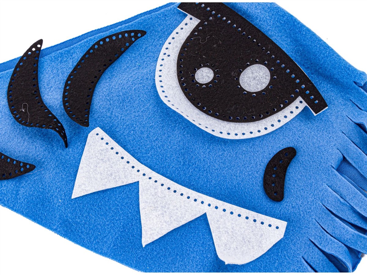 Zestaw składa się z 2 dużych kawałków materiału (zielony korpus) oraz mniejszych (płetwy oraz ogon) oraz elementów do przyozdobienia, które należy ze sobą zszyć lub związać według instrukcji. Poszczególne elementy posiadają już wycięte otwory na igłę, dzięki czemu naszywanie ich na śpiwór to czysta przyjemność. | ![]() |