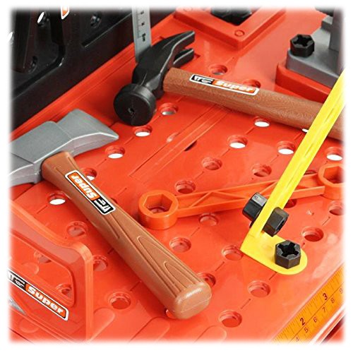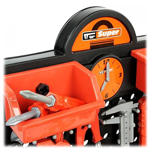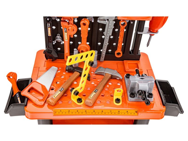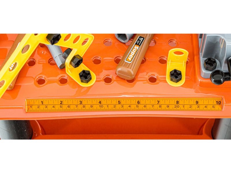 Porządek musi byćZabawka posiada solidny stolik z dodatkową podstawką i pojemniczkami na drobiazgi oraz wygodną tablicę narzędziową z dziurkami i uchwytami, które pozwalają zachować porządek wśród dużej liczby przeróżnych narzędzi. | ![]() |