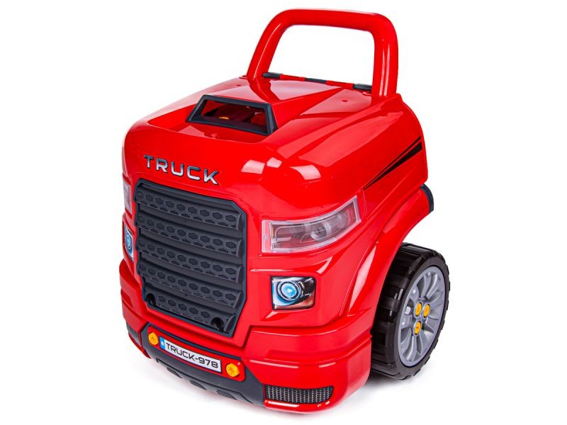 Mnóstwo atrakcjiCiężarówka posiada podnoszona maskę z zabezpieczeniem przed samoczynnym zamknięciem. Kierownicą można kręcić i posiada prawdziwy klakson. Pod kierownicą umieszczony jest praktyczny schowek na narzędzia. Pod maską kryje się mnóstwo elementów do rozkręcania i skręcania, mały mechanik może dodatkowo wymienić świece oraz sprawdzić poziom oleju. |