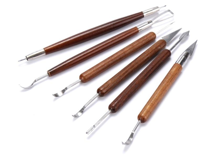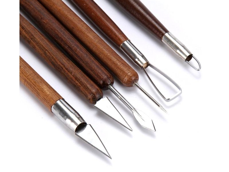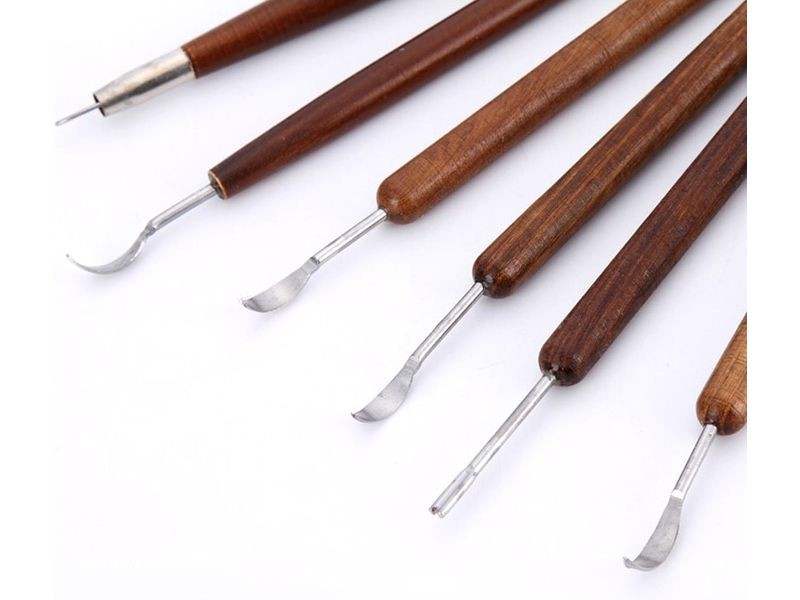 Różne kształty końcówek umożliwiają uzyskanie pożądanego efektu pracy. Narzędzia posiadają drewniane uchwyty.
