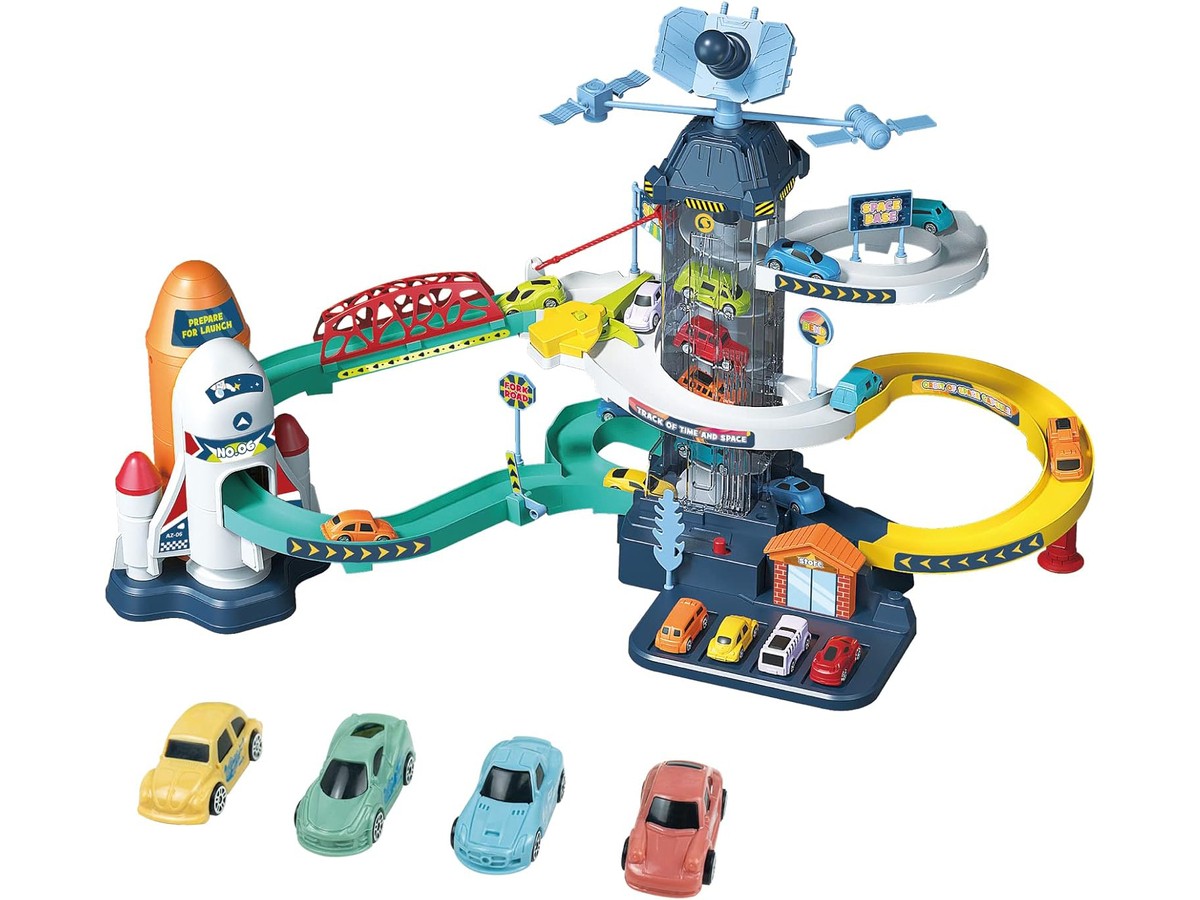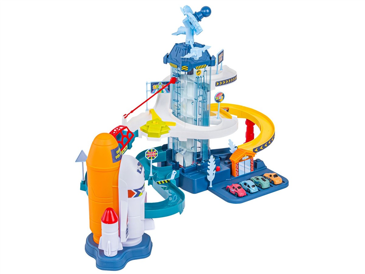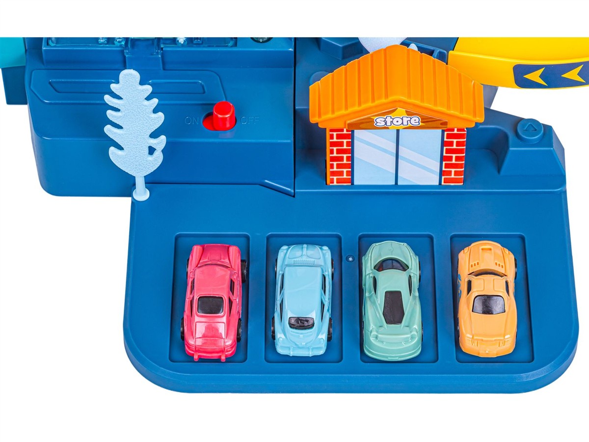 Zabawa parkingiem jest tym ciekawsza, im bardziej jest on rozbudowany i im więcej gadżetów posiada. A ten wielopoziomowy parking posiada ich wystarczająco dużo, by każda minuta zabawy była najwspanialszym momentem dnia: