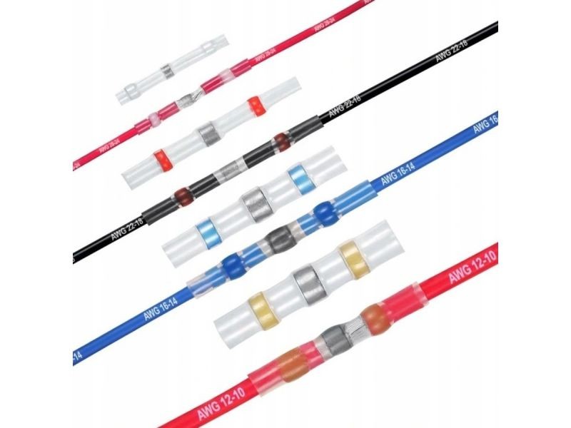 Zestaw szybkozłączek z cyną w rurce termokurczliwej to idealny zestaw do naprawy i łączenia różnego rodzaju przewodów. Złączki do kabli wykonane są z koszulki termokurczliwej, cyny lutowniczej oraz termoplastycznego kleju.