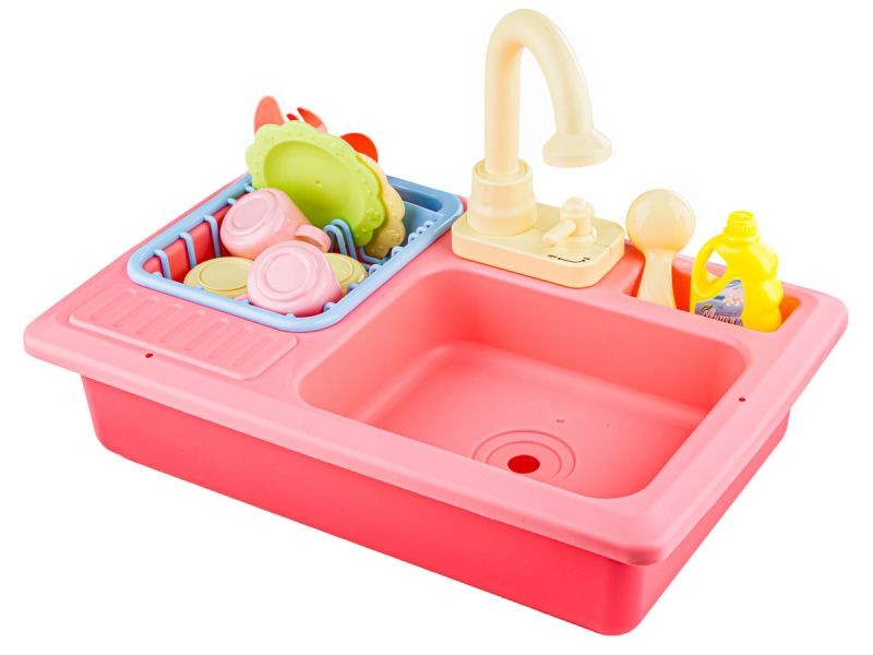 Zabawa naszym zlewozmywakiem jest bardzo realistyczna. Kran posiada bowiem funkcję odkręcania prawdziwej wody. Jest to obieg zamknięty - aby woda leciała z kranu najpierw należy ją wlać do podstawki pod zlewem. Wodę lejemy tylko do wskazanego poziomu. Umieszczamy baterie i po przekręceniu zaworu woda zaczyna lecieć. Z takim zestawem dziecko może samo opłukać sobie owoce oraz pozmywać naczynia.