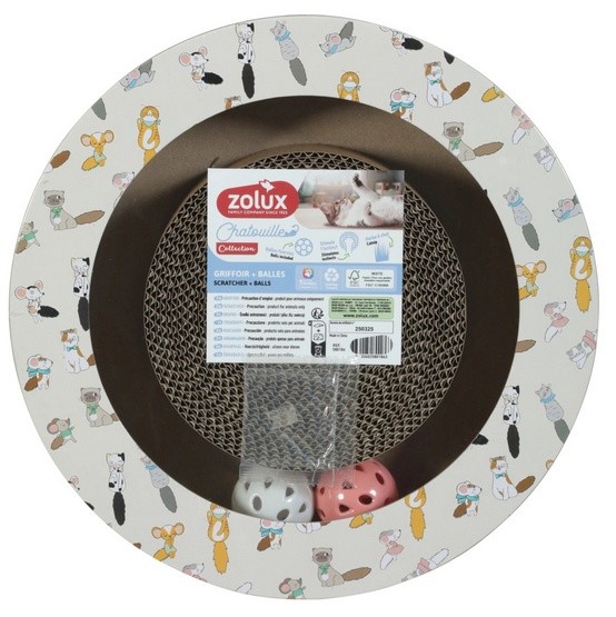 Drapka ZOLUX CHATOUILLE z piłkami to innowacyjny produkt łączący funkcję drapania z interaktywną zabawą. Okrągła konstrukcja z wbudowanymi piłeczkami zapewnia kotom wielopoziomową rozrywkę, zaspokajając naturalne potrzeby behawioralne.