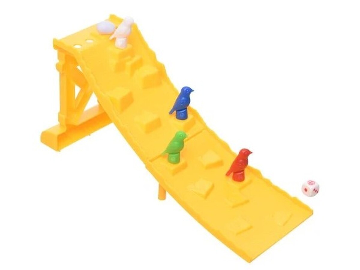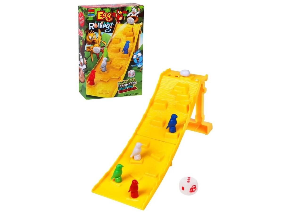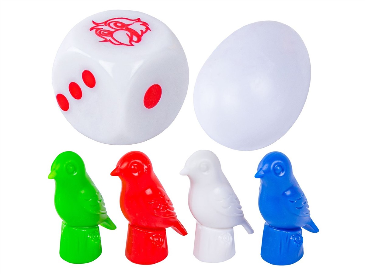 Zasady gry:Gra polega na tym aby jak najszybciej dostać się na szczyt góry. Gracze wybierają kolor pionka i rozpoczyna się wyścig. Gracze po kolei rzucają kostką i przesuwają się do góry zgodnie z wylosowaną liczbą kropek. Jeśli kostka wskaże ptaszka - gracz może zdecydować czy przesunie się o jeden krok do przodu czy zdecyduje się zrzucić z góry jajko. Jajko może strącić pionki pozostałych graczy, którzy w takim wypadku muszą rozpoczynać wyścig od nowa. Ale takie zagranie wiąże się z ryzykiem, że nasz ptaszek również spadnie :) Wygrywa osoba, która jako pierwsza dostanie się na szczyt. | ![]() |