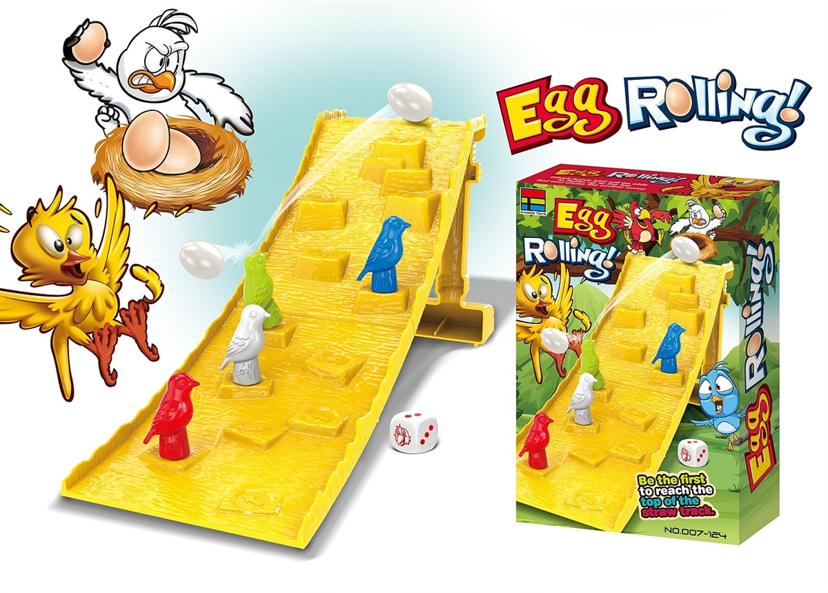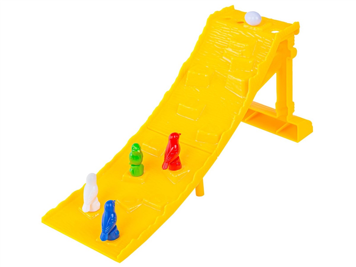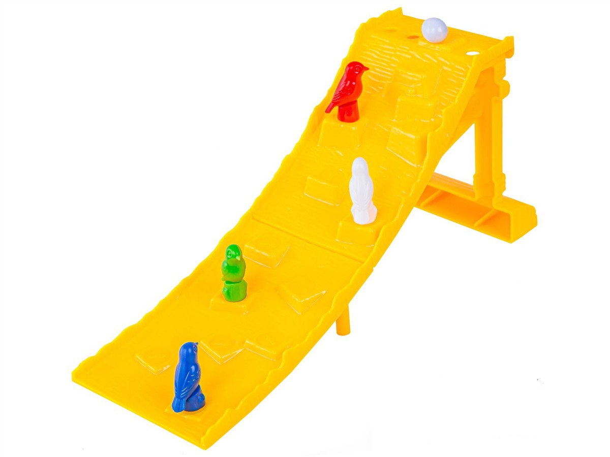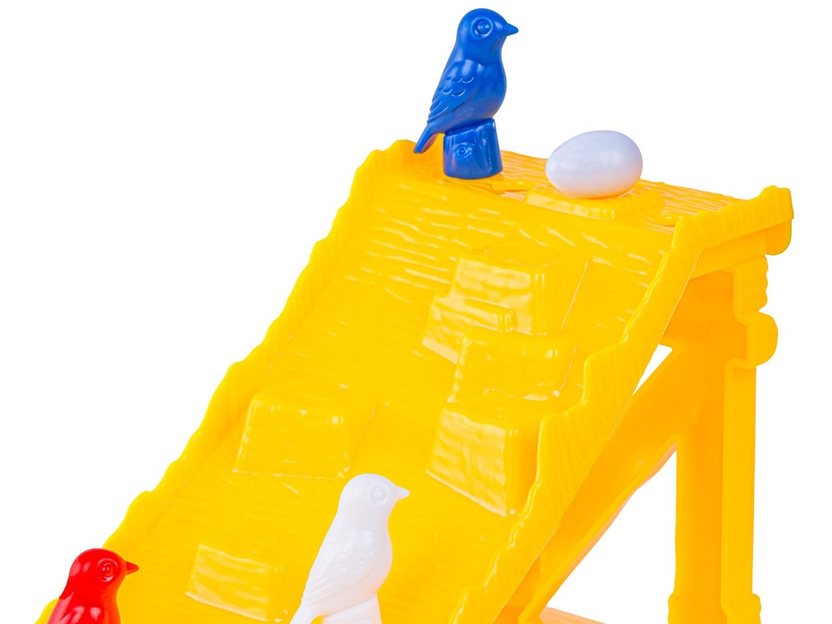 Zasady gry:Gra polega na tym aby jak najszybciej dostać się na szczyt góry. Gracze wybierają kolor pionka i rozpoczyna się wyścig. Gracze po kolei rzucają kostką i przesuwają się do góry zgodnie z wylosowaną liczbą kropek. Jeśli kostka wskaże ptaszka - gracz może zdecydować czy przesunie się o jeden krok do przodu czy zdecyduje się zrzucić z góry jajko. Jajko może strącić pionki pozostałych graczy, którzy w takim wypadku muszą rozpoczynać wyścig od nowa. Ale takie zagranie wiąże się z ryzykiem, że nasz ptaszek również spadnie :) Wygrywa osoba, która jako pierwsza dostanie się na szczyt. | ![]() |